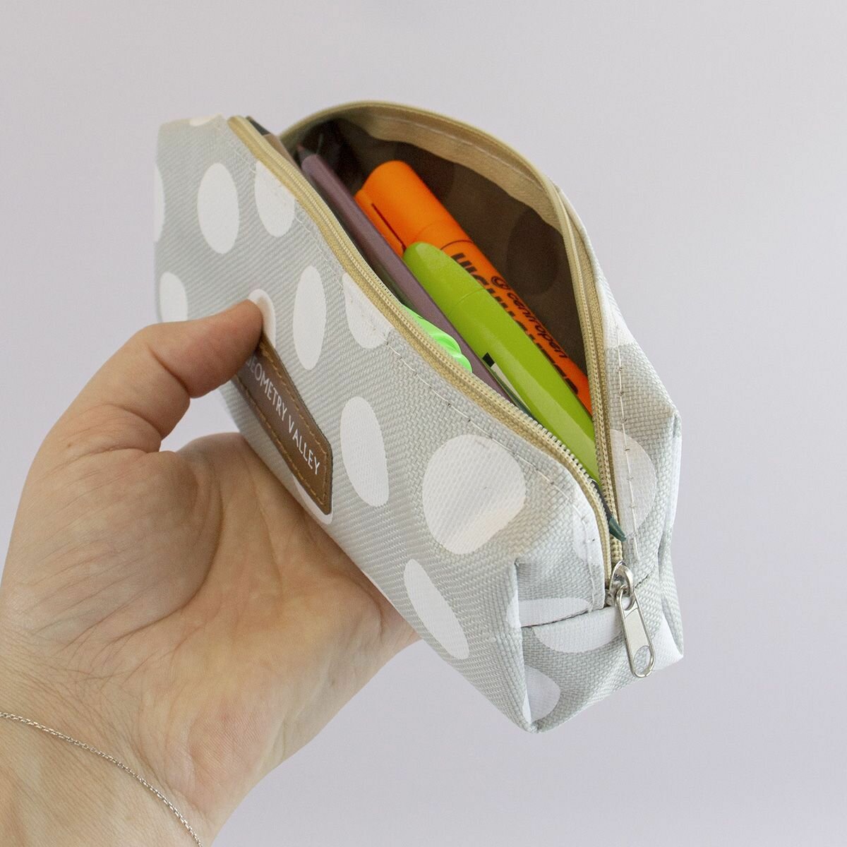 Купить Школьный пенал для офиса Geometry Valley Tube, холщовый пенал-косметичка в Серый горошек