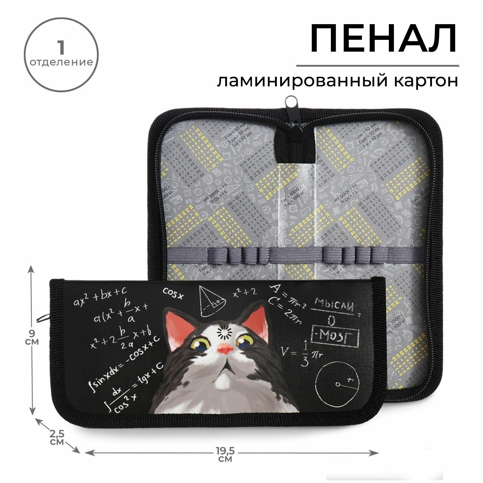 Купить Пенал 1 секция, 90 х 195 х 25 мм, Calligrata Умный кот , ламинированный картон