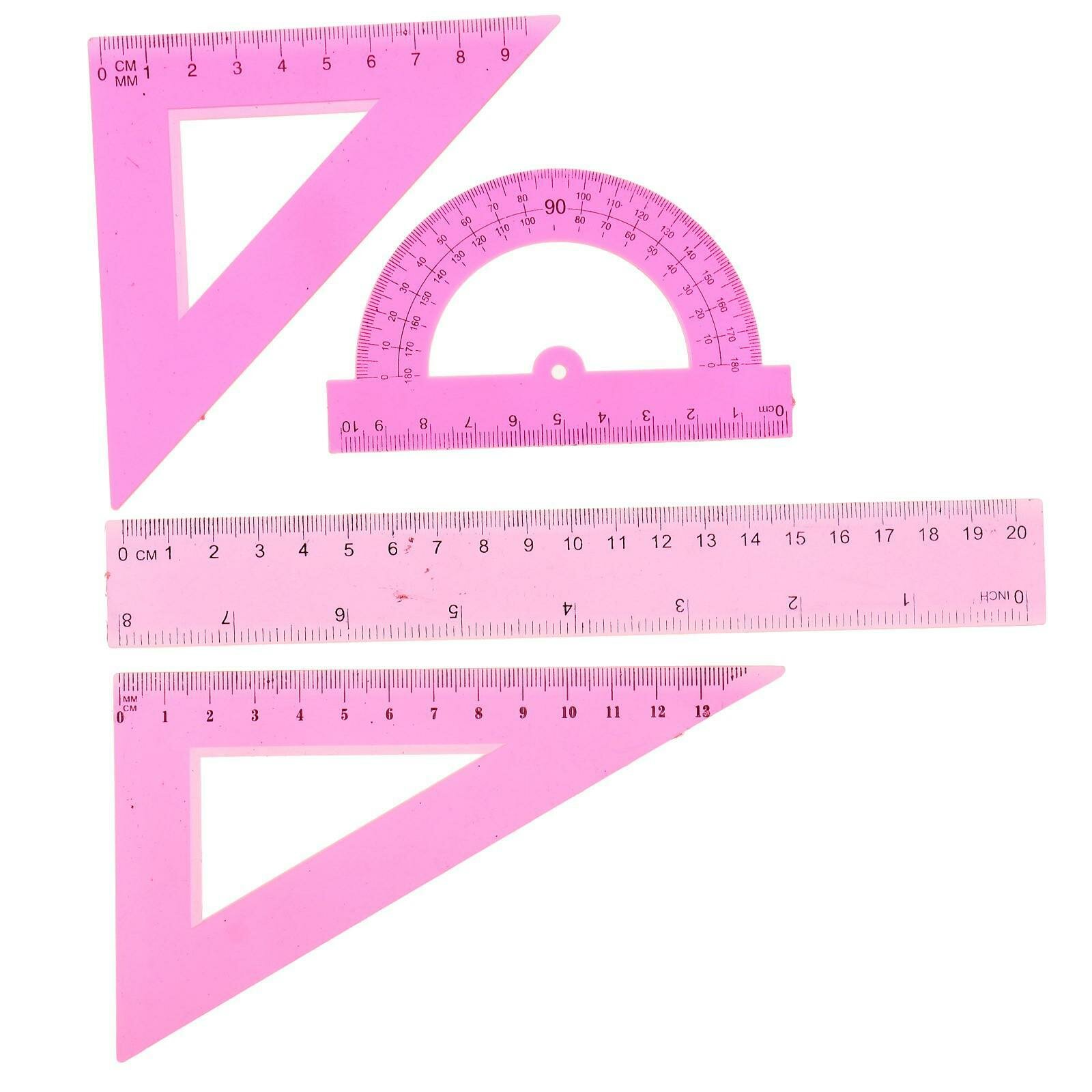 Набор чертежный, прозрачный, на блистере, 4 предмета (линейка 20 см, 2 угольника, транспортир), микс интересное: