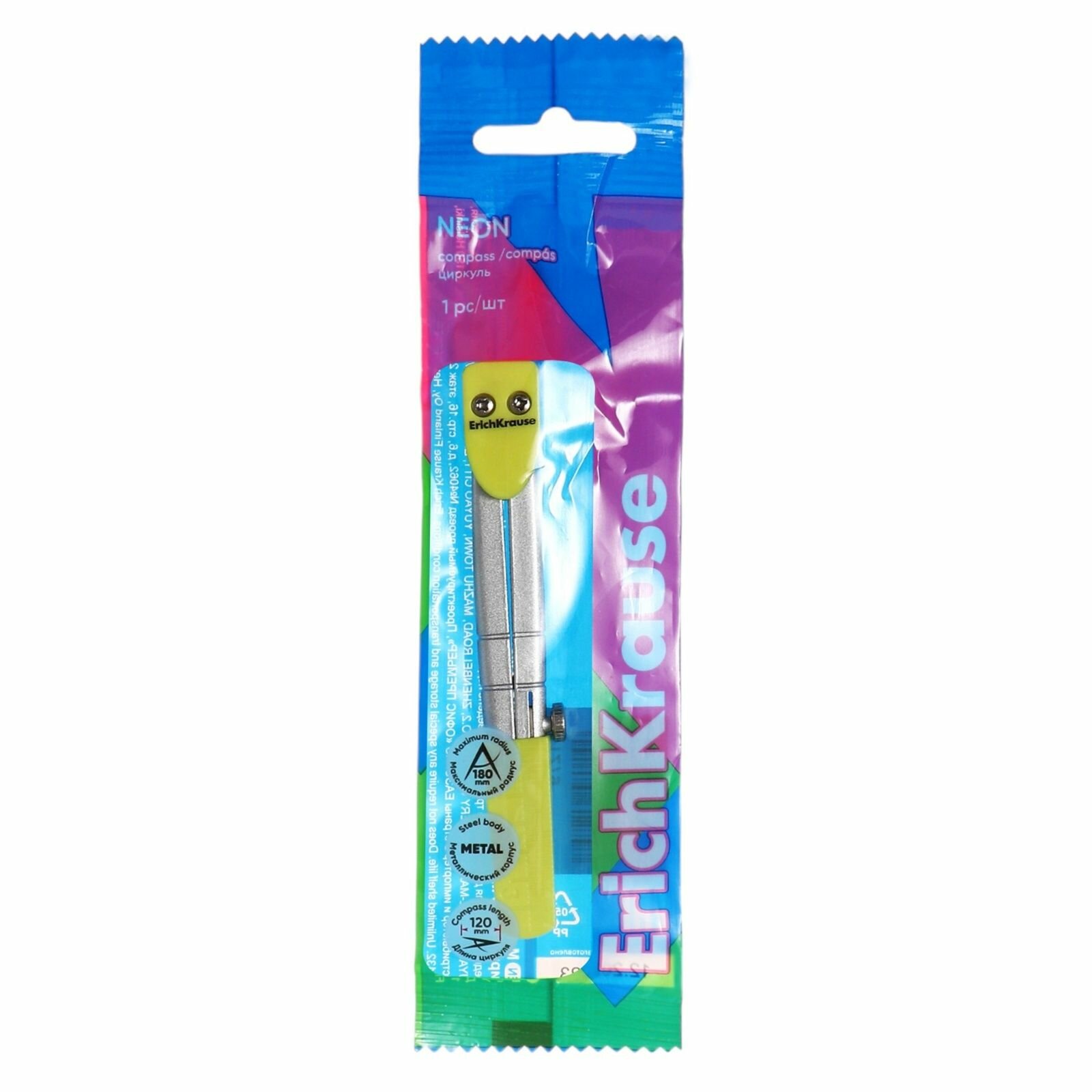 Циркуль металлический ErichKrause Neon 120мм, блистер, желтый интересное: