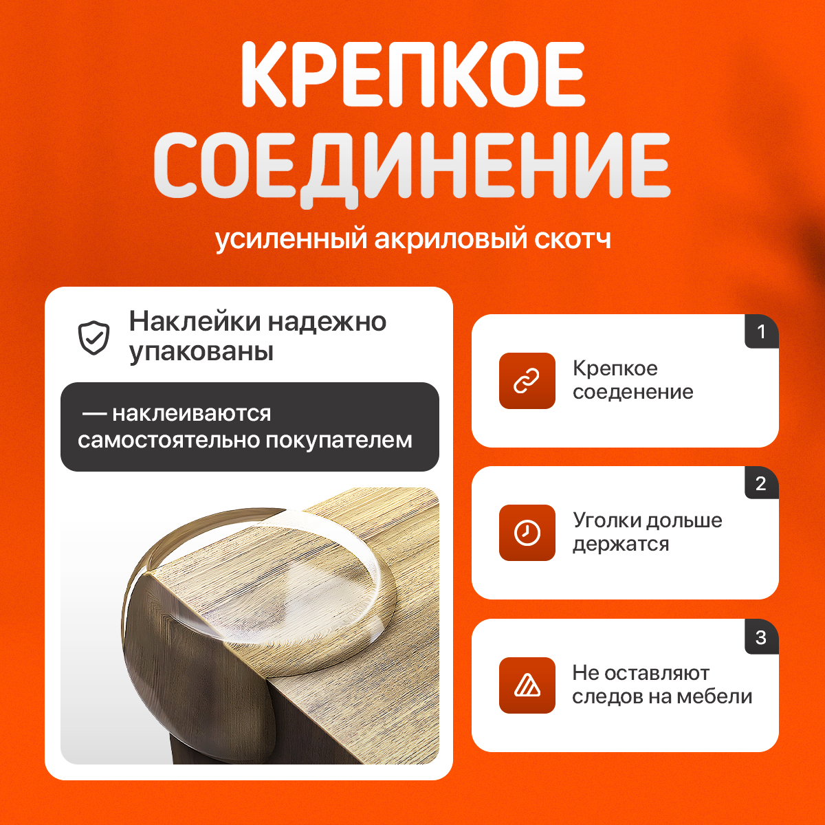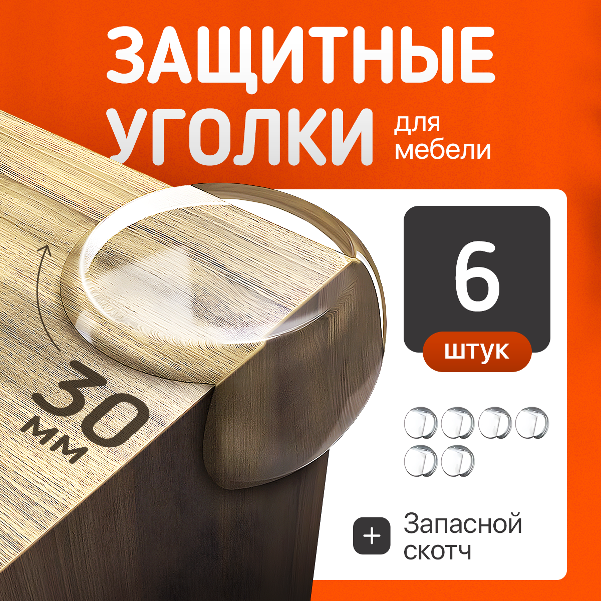 "Защитные уголки для мебели" - набор из 6 штук, с усиленной клейкой основой