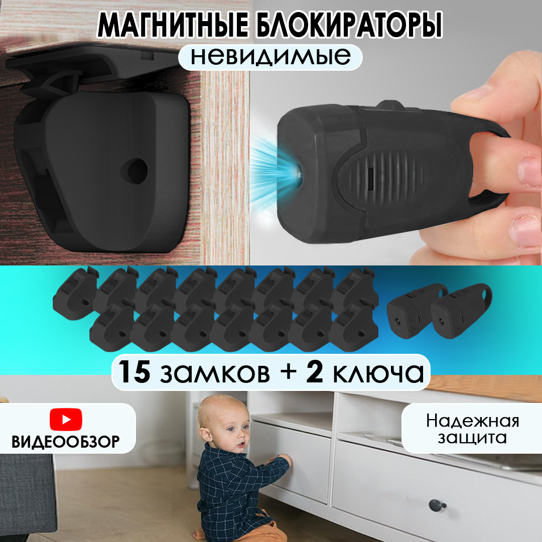 Ниже Вы можете прочитать отзывы на Магнитный блокиратор замок для защиты шкафов и ящиков, 15 замков и 2 ключа, черный, ознакомится с подробными характеристиками, посмотреть интересные обзоры и фотографии на Магнитный блокиратор замок для защиты шкафов и ящиков, 15 замков и 2 ключа, черный.
