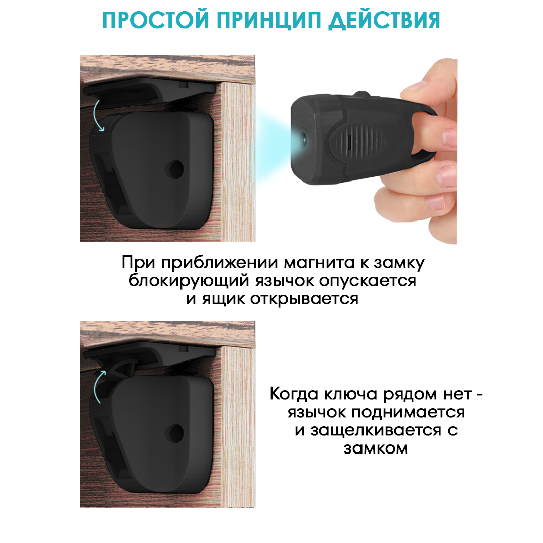 Магнитный блокиратор замок для защиты шкафов и ящиков, 3 замка и 1 ключ, черный