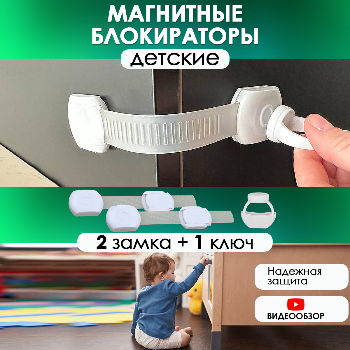 Блокиратор от детей для мебели магнитный наружный Hangwoods, 2 замка и 1 ключ интересное: