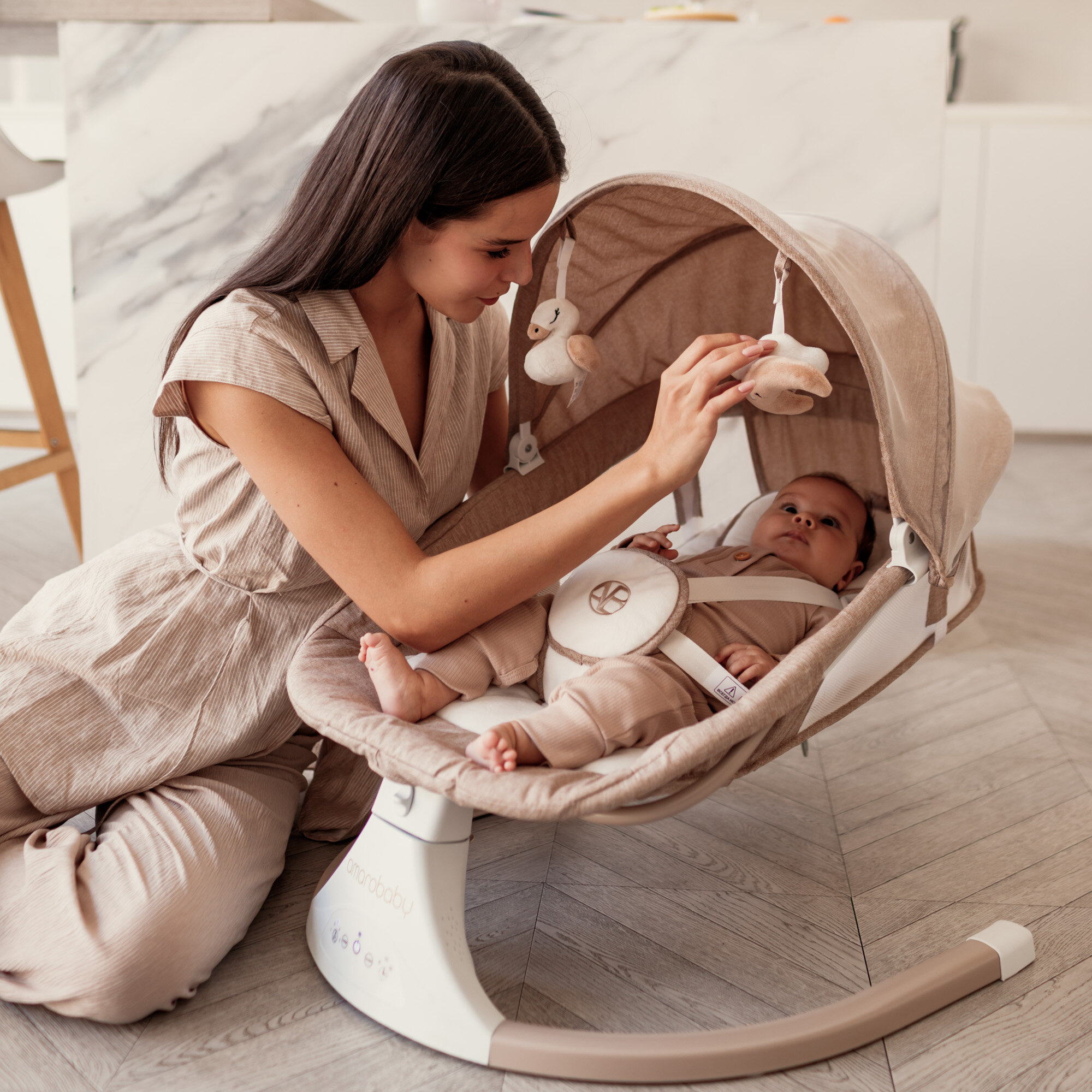 Электрокачели Amarobaby LUCKY SWING (AB23-22LUCKY/03) бежевый интересное: