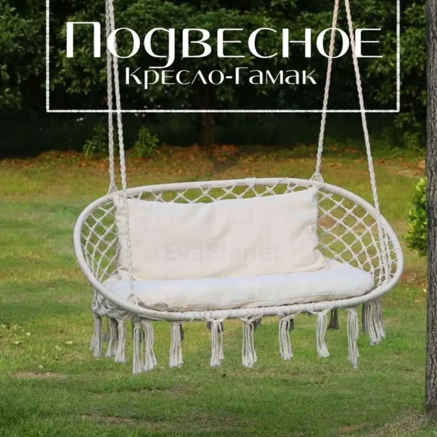 Подвесные качели детские двухместные белые с кисточками интересное: