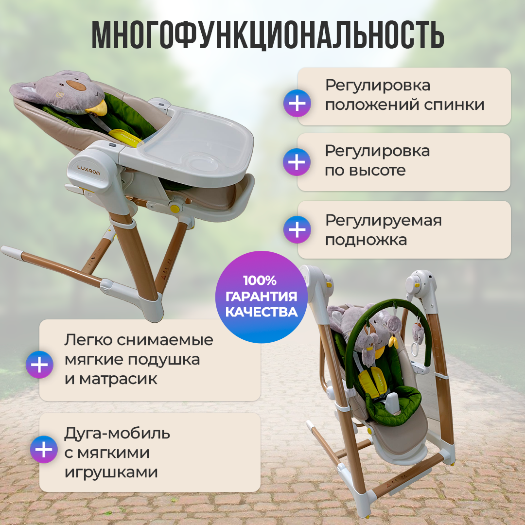 Универсальный стульчик-качели Luxmom L3, серый интересное: