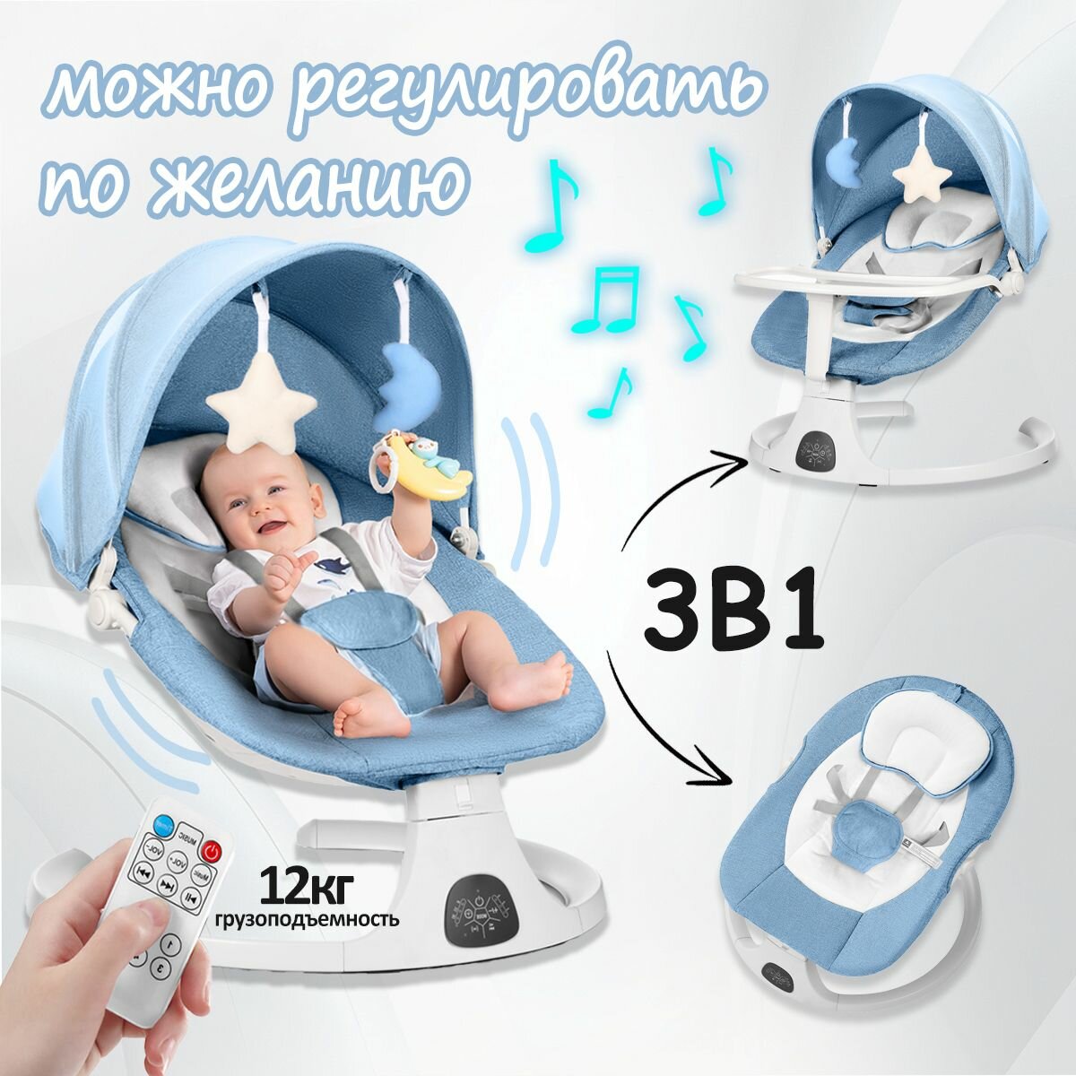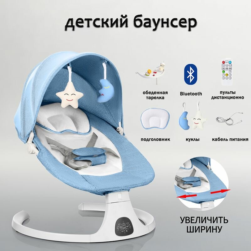 Электрокачели для новорожденного,DEAREST S0008 MAX,Кресло-качалка,шезлонг для новорожденных от 0, с игрушками Bluetooth,синий интересное: