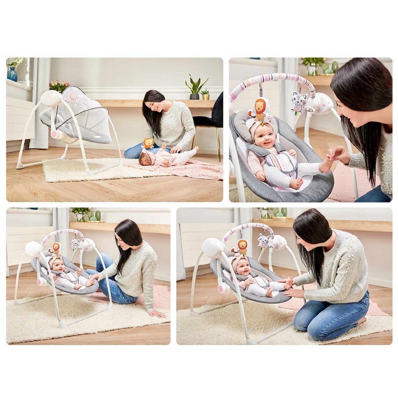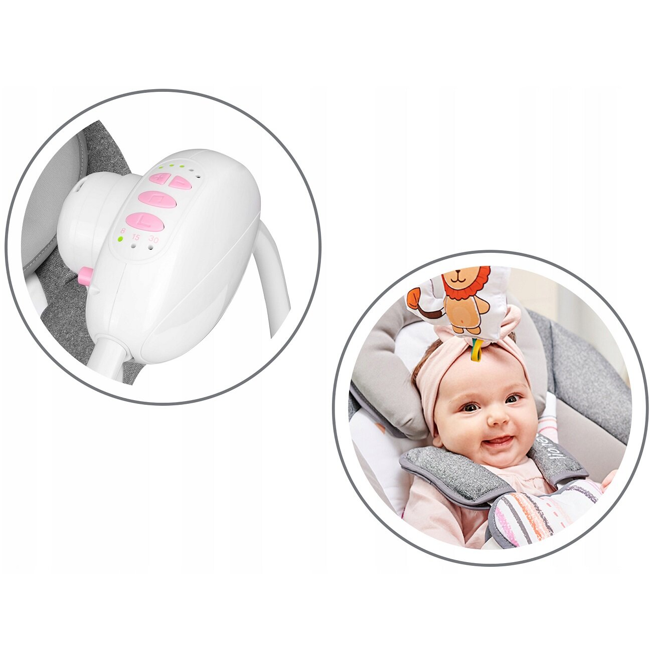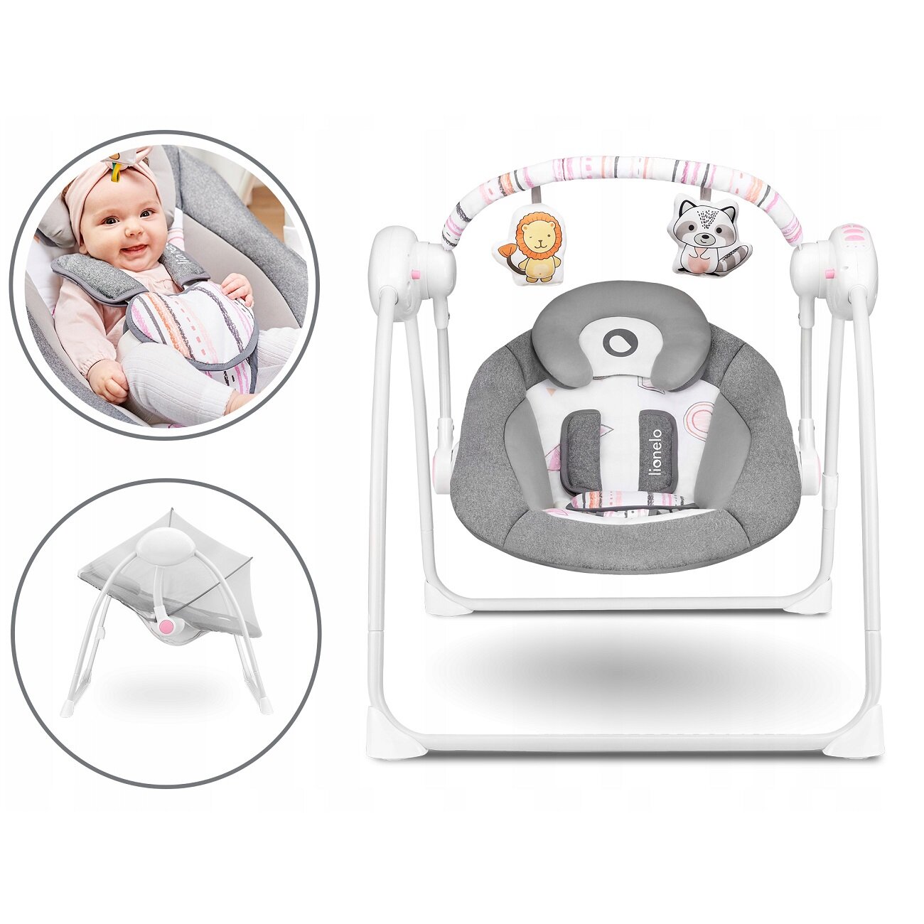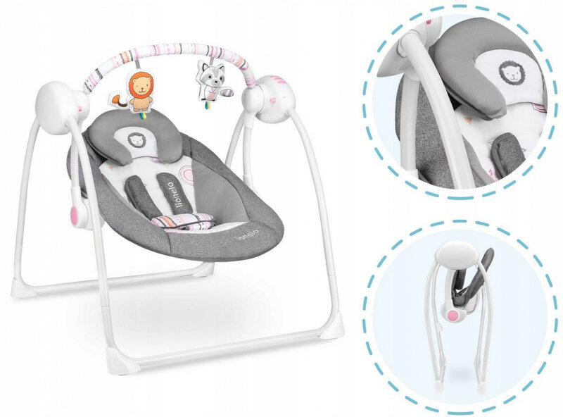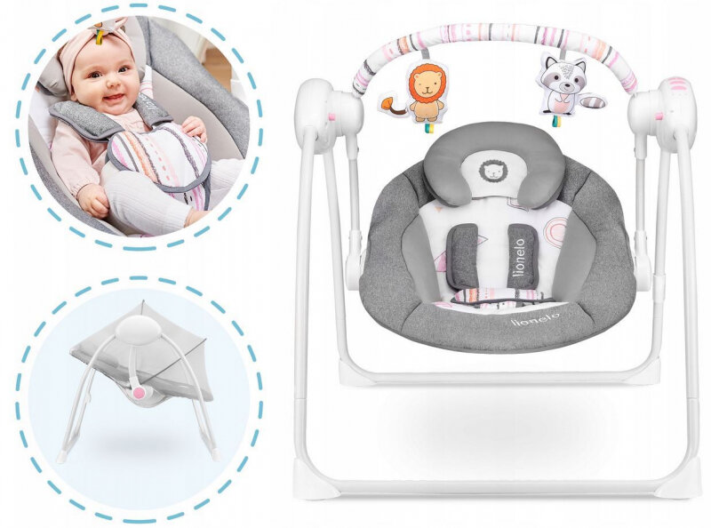 Электронные качели для детей Lionelo LO-Ruben Stone Grey Rosa - шезлонг -качалка интересное: