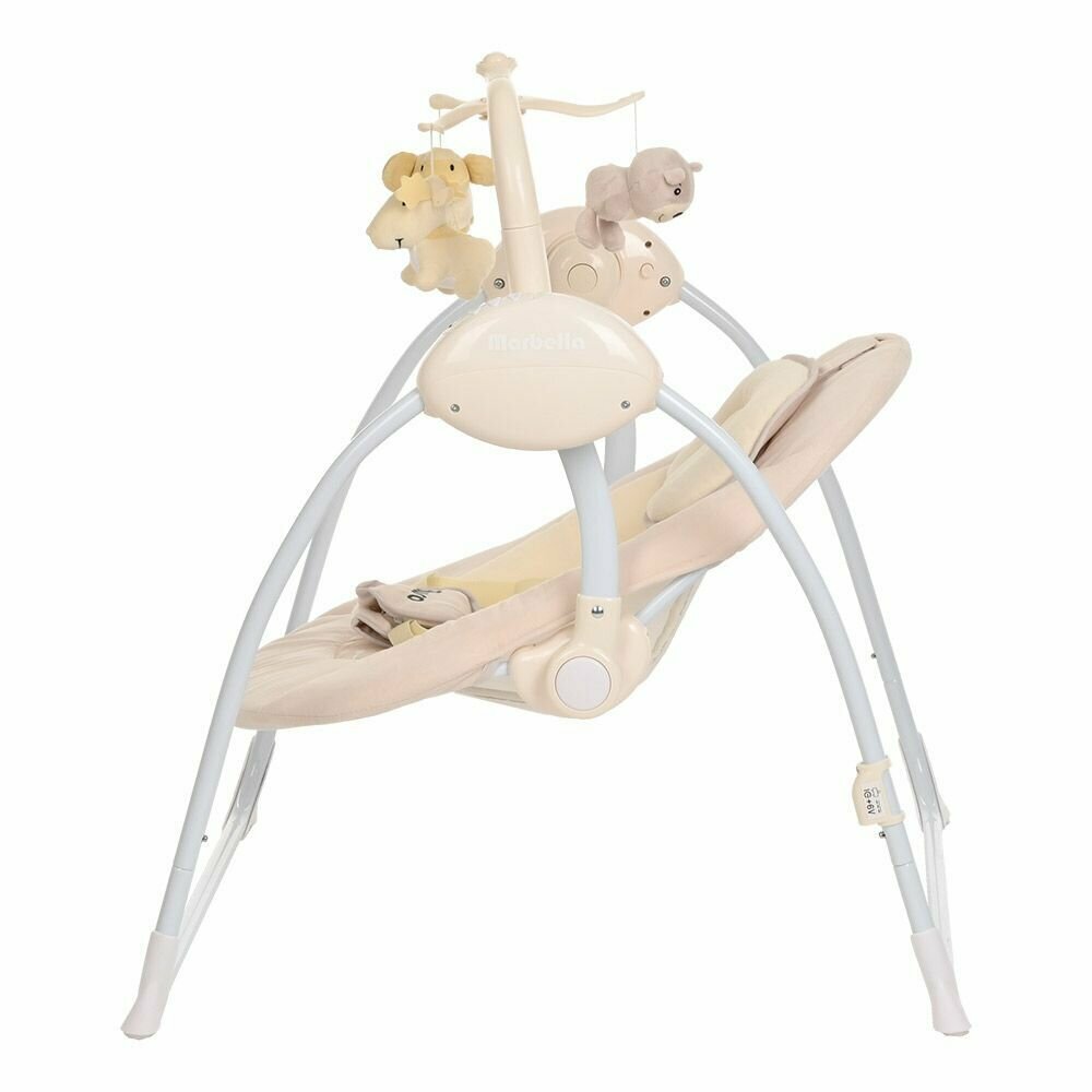 Электрокачеля детская для новорожденных Marbella Beige Bear с таймером, пультом, 5 скоростей