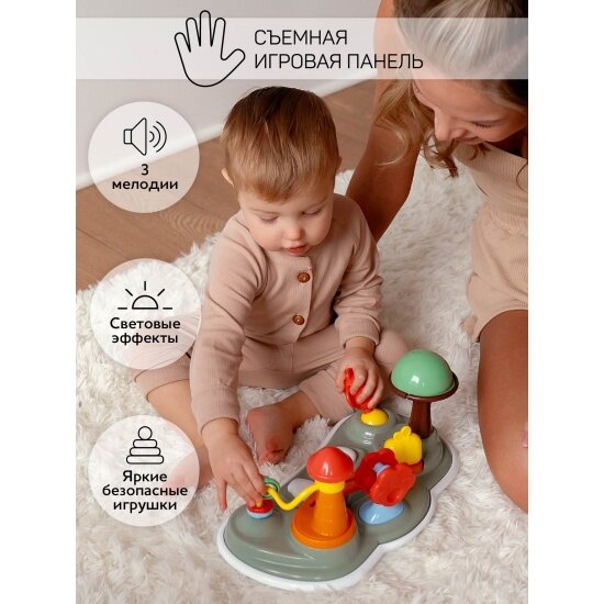 | Комплектация | Основа 1 шт, игровая панель 1 шт с игрушками, колеса 7 шт, сиденье со спинкой 1 шт, стоппер 2 шт |