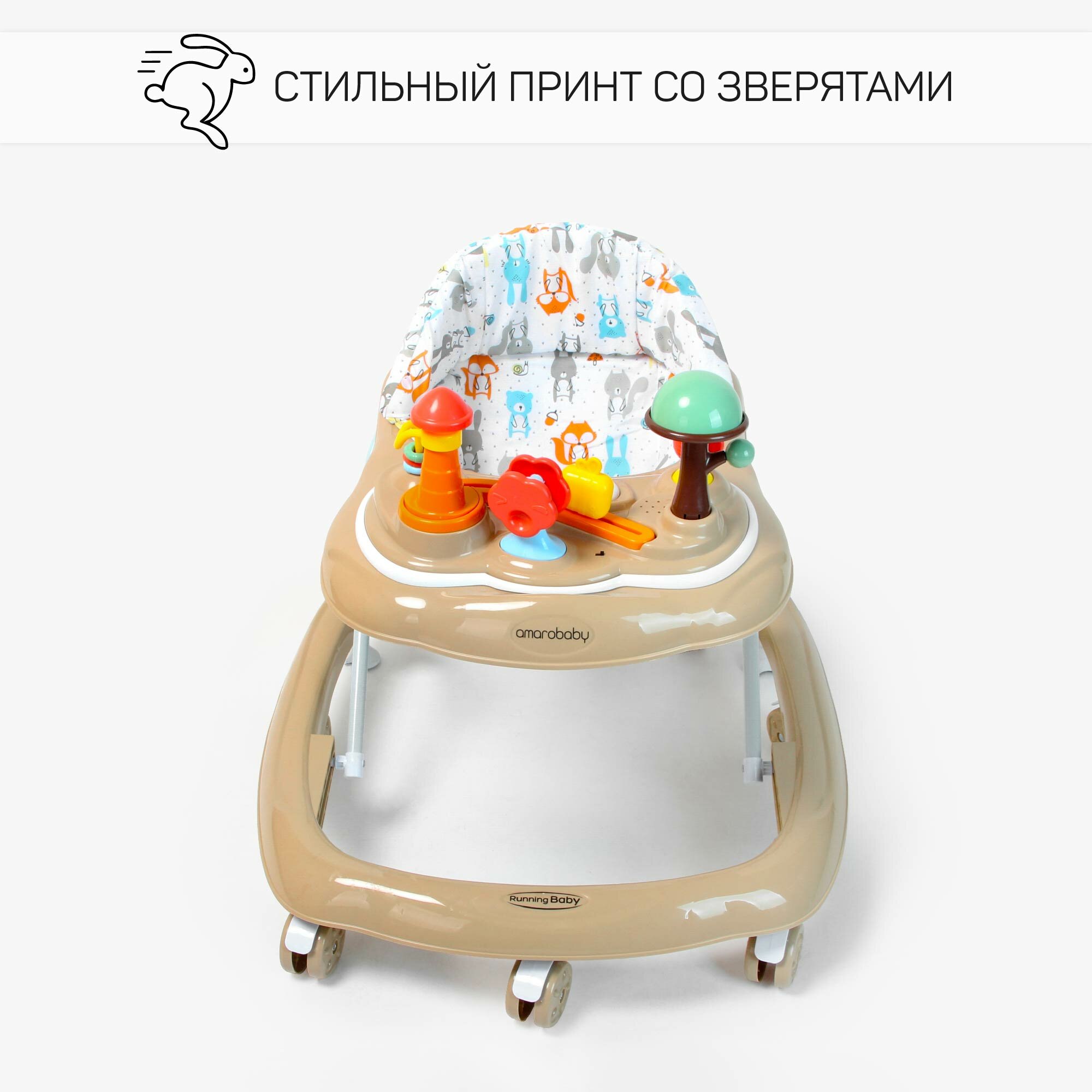 Купить Ходунки детские с электронной игровой панелью Amarobaby, Running Baby, коричневый