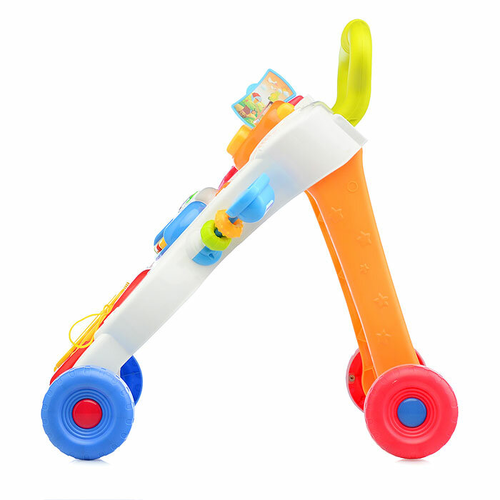 | Комплектация | • Ходунки-каталка состоят из развивающих и развлекательных игр таких как: - пластиковая книжечка с яркими рисунками - трещащий телефонный диск. - музыкальное пианино. - телефон-погремушка с хрустящей кнопкой. - магнитная доска для рисования. - сбоку каталки погремушки разного вида и формы |