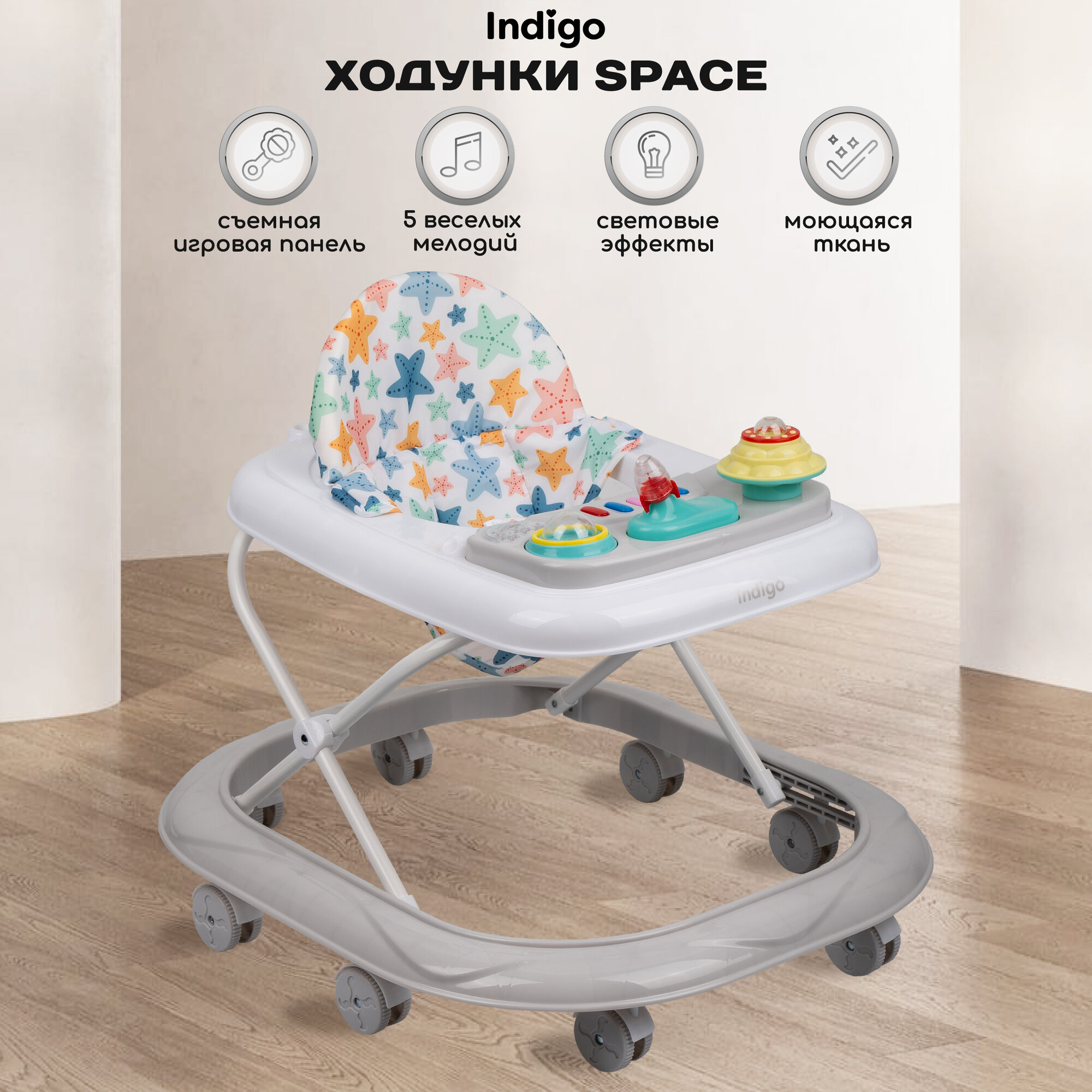 Купить Ходунки детские Indigo Space музыкальные, 8 колес, серый