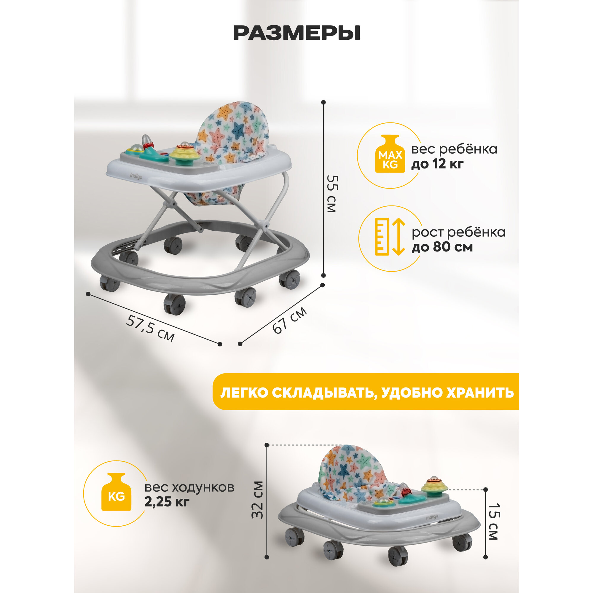 Ходунки детские Indigo Space музыкальные, 8 колес, серый интересное: