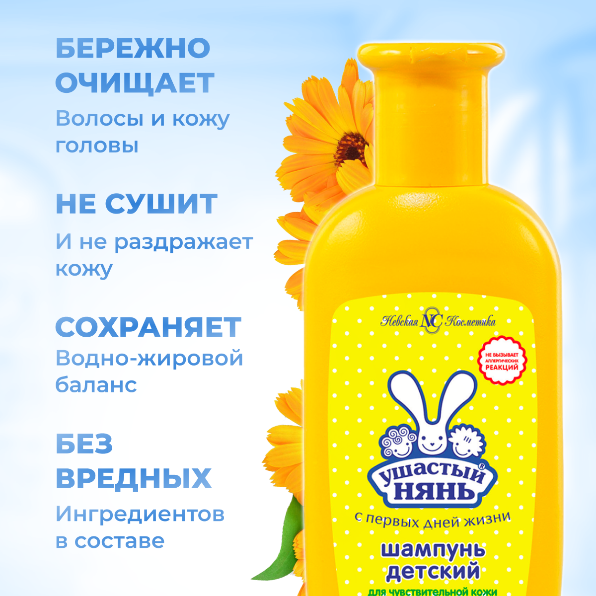Ушастый Нянь Шампунь для чувствительной кожи с чередой и календулой, 200 мл