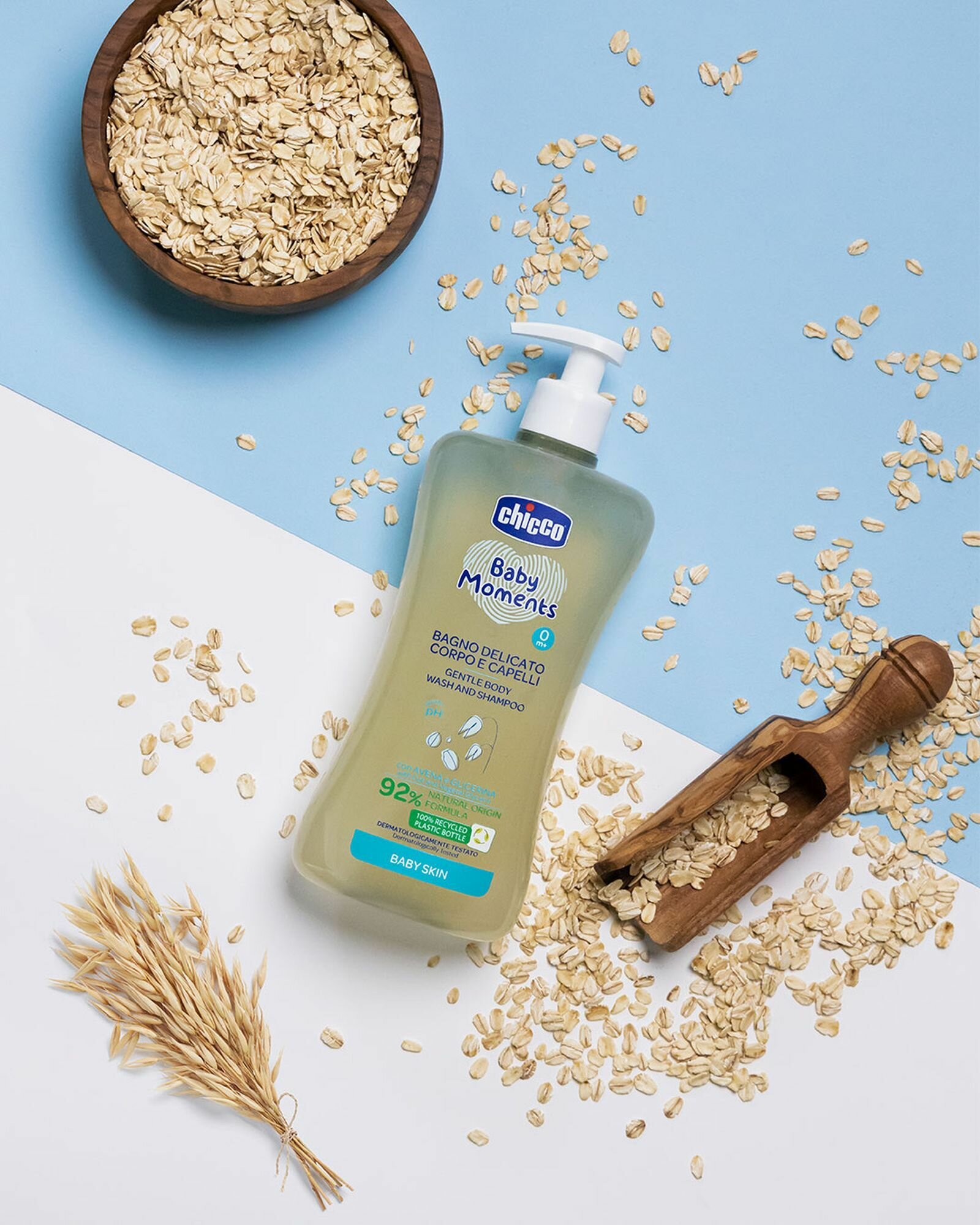 Купить Шампунь детский для волос и тела Chicco Baby Moments Нежное средство для купания новорожденных 500 мл с овсом без слез 0+