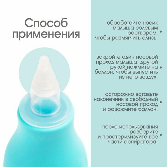 Детский назальный аспиратор, с колпачком, цвет бирюзовый интересное: