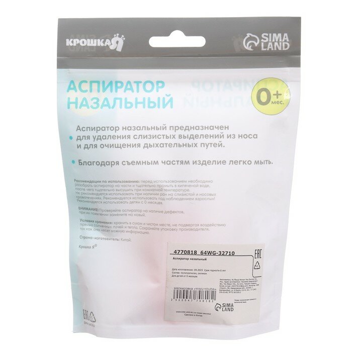 Аспиратор назальный со сменным носиком, цвет розовый интересное: