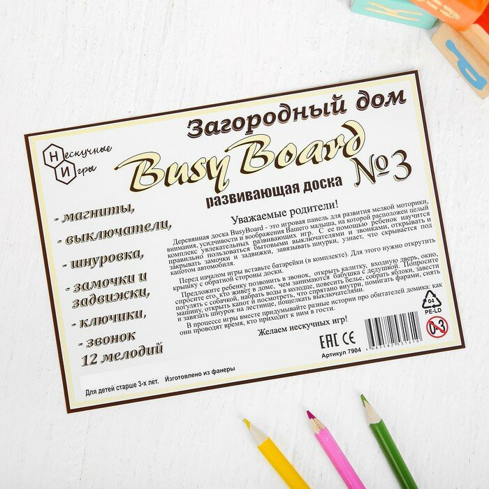 Деревянный бизиборд Развивающая доска №3 Загородный дом 7904