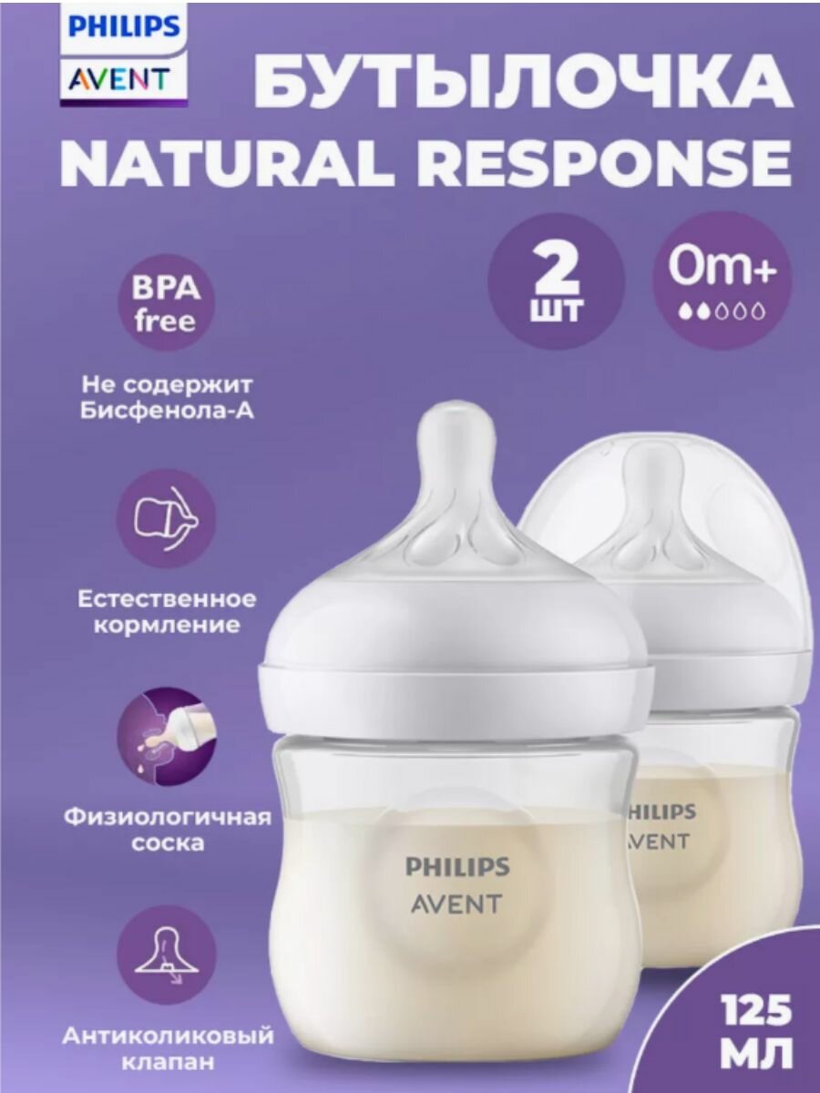 Детский товар Philips Бутылочка для кормления 125 мл, 2 шт, серия NATURAL Response, пластик интересное: