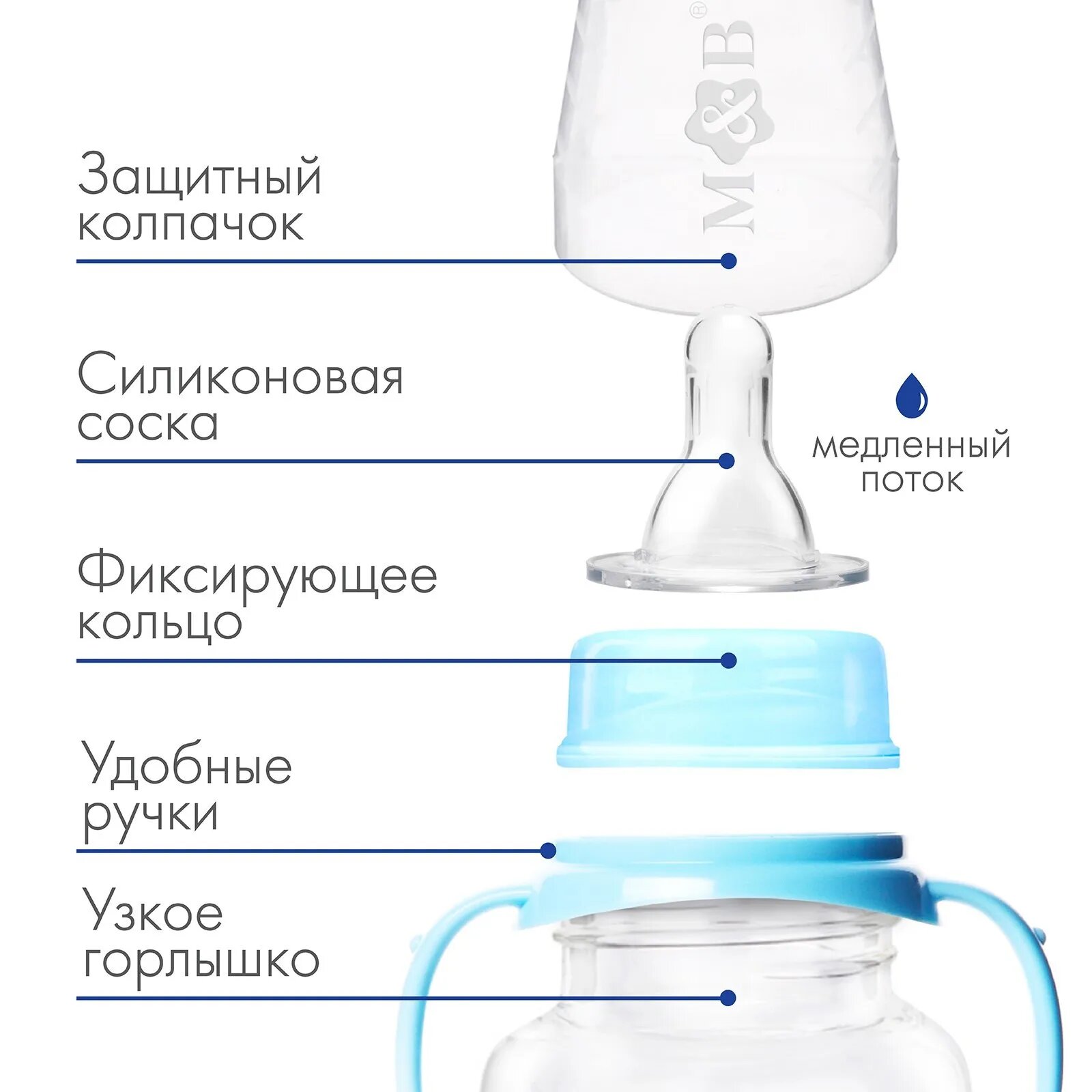 Бутылочка для кормления «Маленький джентльмен» детская классическая, с ручками, 150 мл, от 0 мес., цвет голубой интересное: