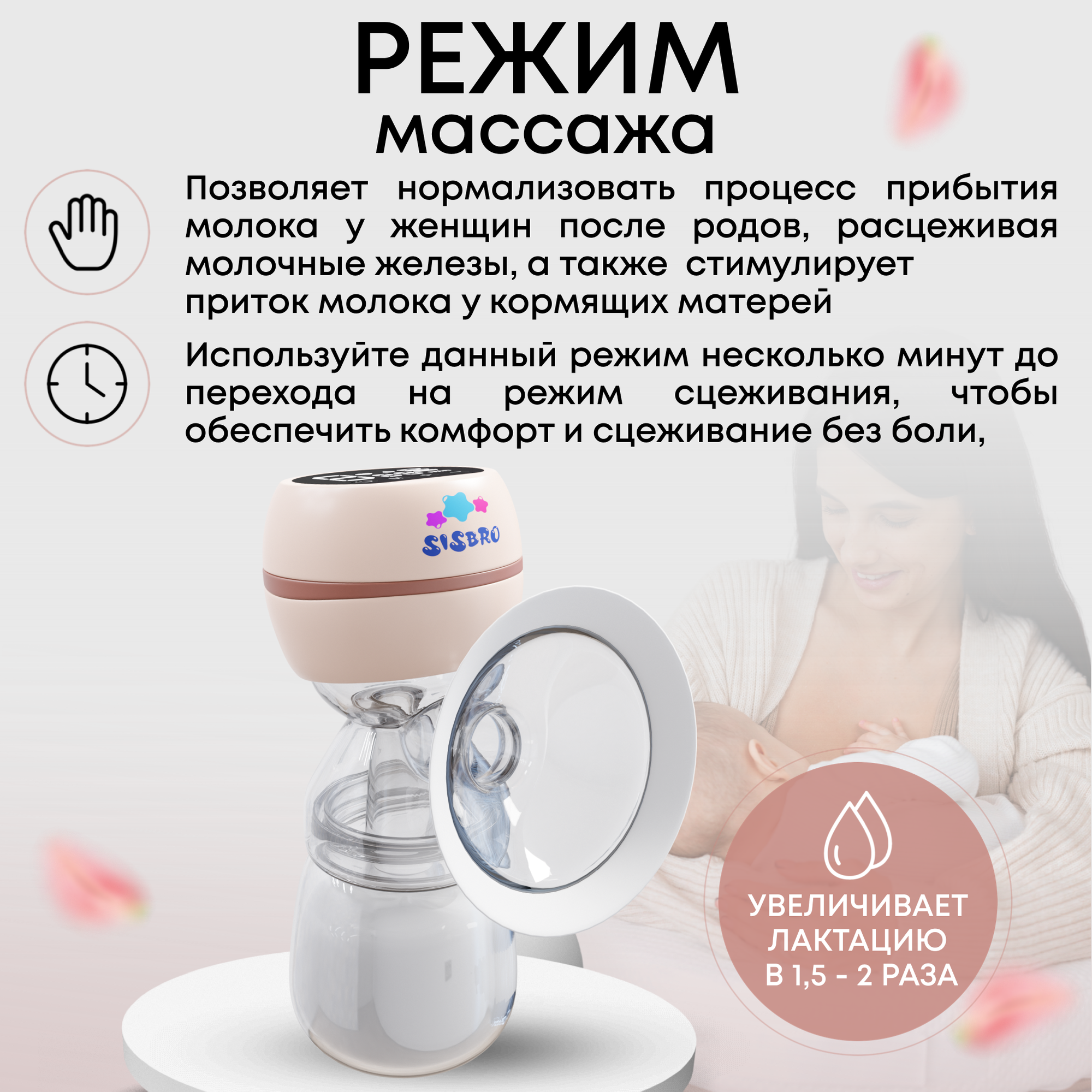 Молокоотсос электрический беспроводной Sisbro / розовый интересное: