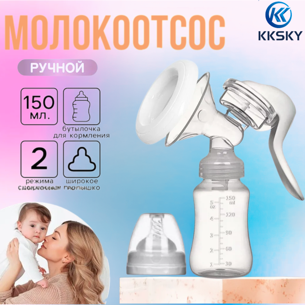 Молокоотсос ручной механический с бутылочкой для кормления ШГ и соской, 150 мл., цвет белый