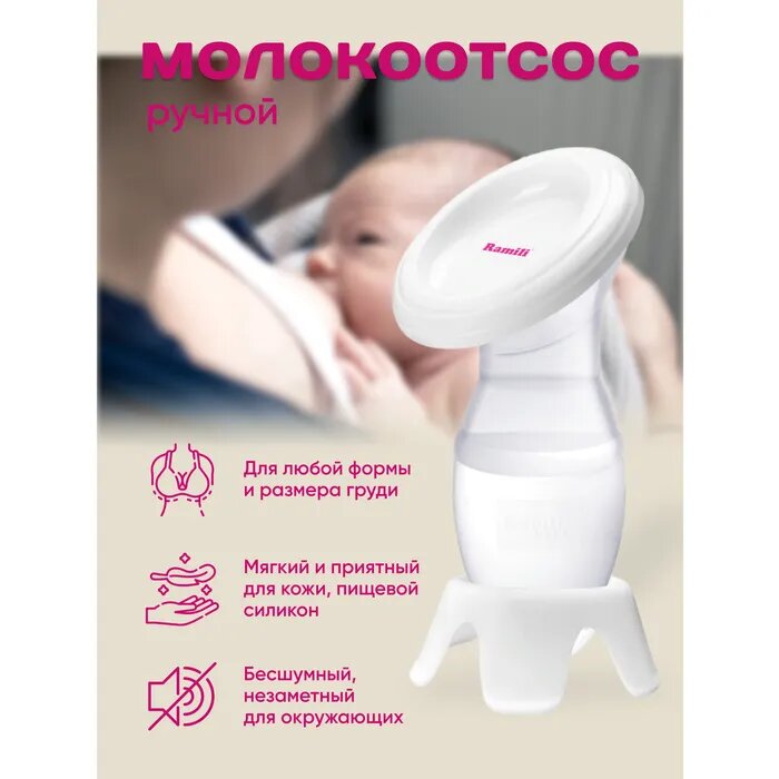 Молокоотсос Ramili Силиконовый с крышкой и уникальной подставкой интересное: