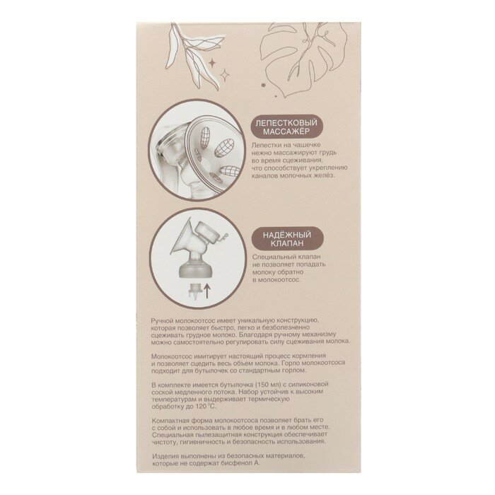 Молокоотсос ручной, 2в1 с бутылкой КЛ, 150мл, цвет белый интересное: