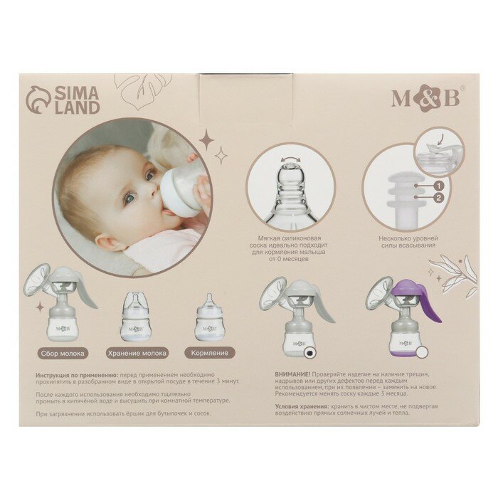 Молокоотсос ручной, 2в1 с бутылкой ШГ, 150мл, цвет белый интересное: