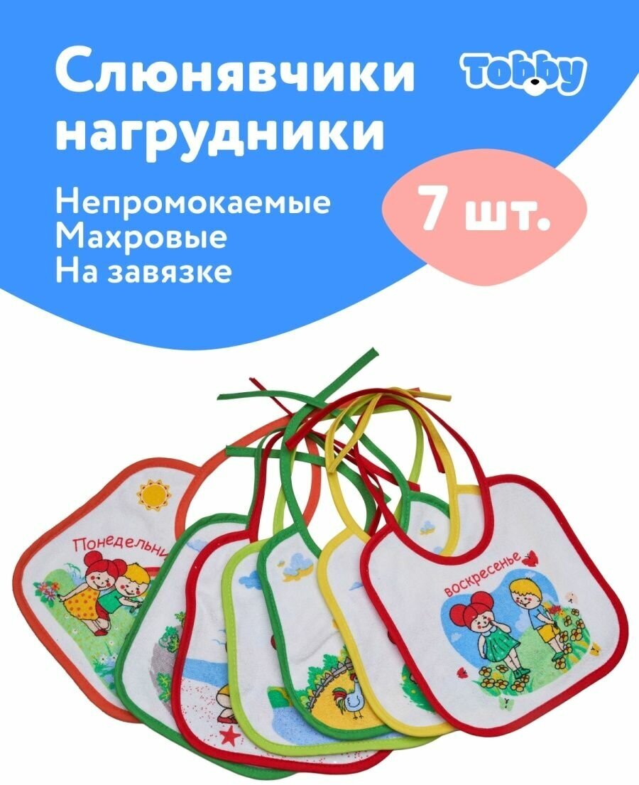 TOBBY Нагрудник для кормления (слюнявчик для кормления) махровый 7 шт