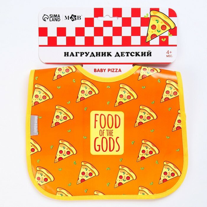 Mum&Baby Нагрудник для кормления «Pizza» непромокаемый на липучке, с карманом интересное:
