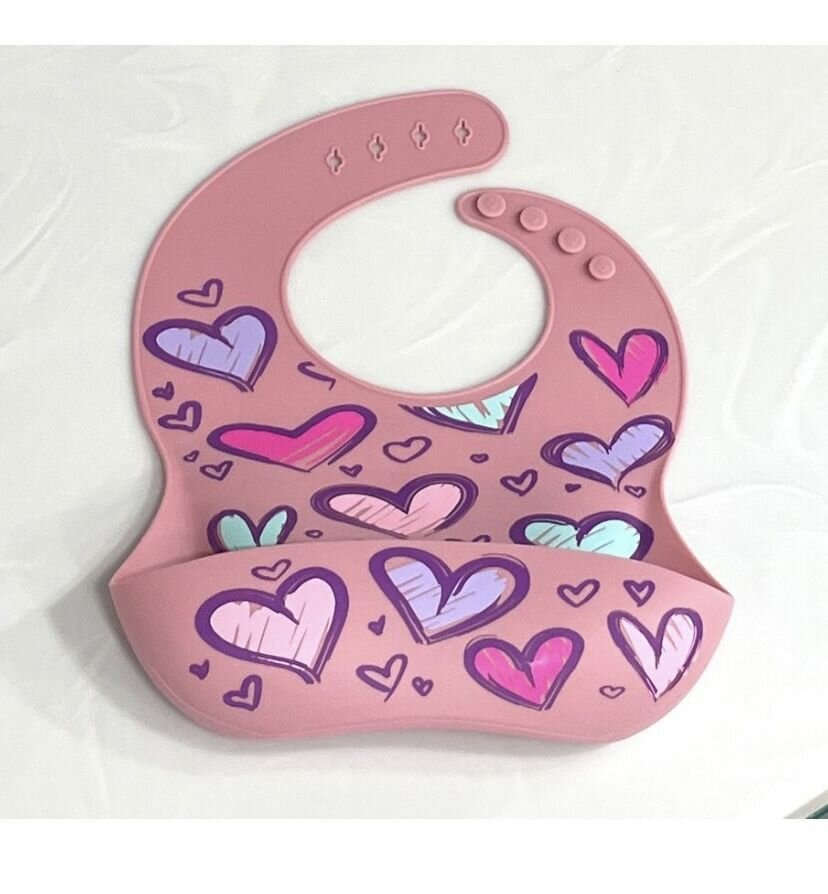 Силиконовый нагрудник для кормления "Сердечки", розовый