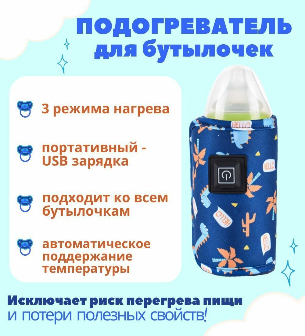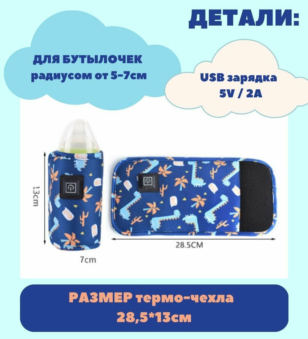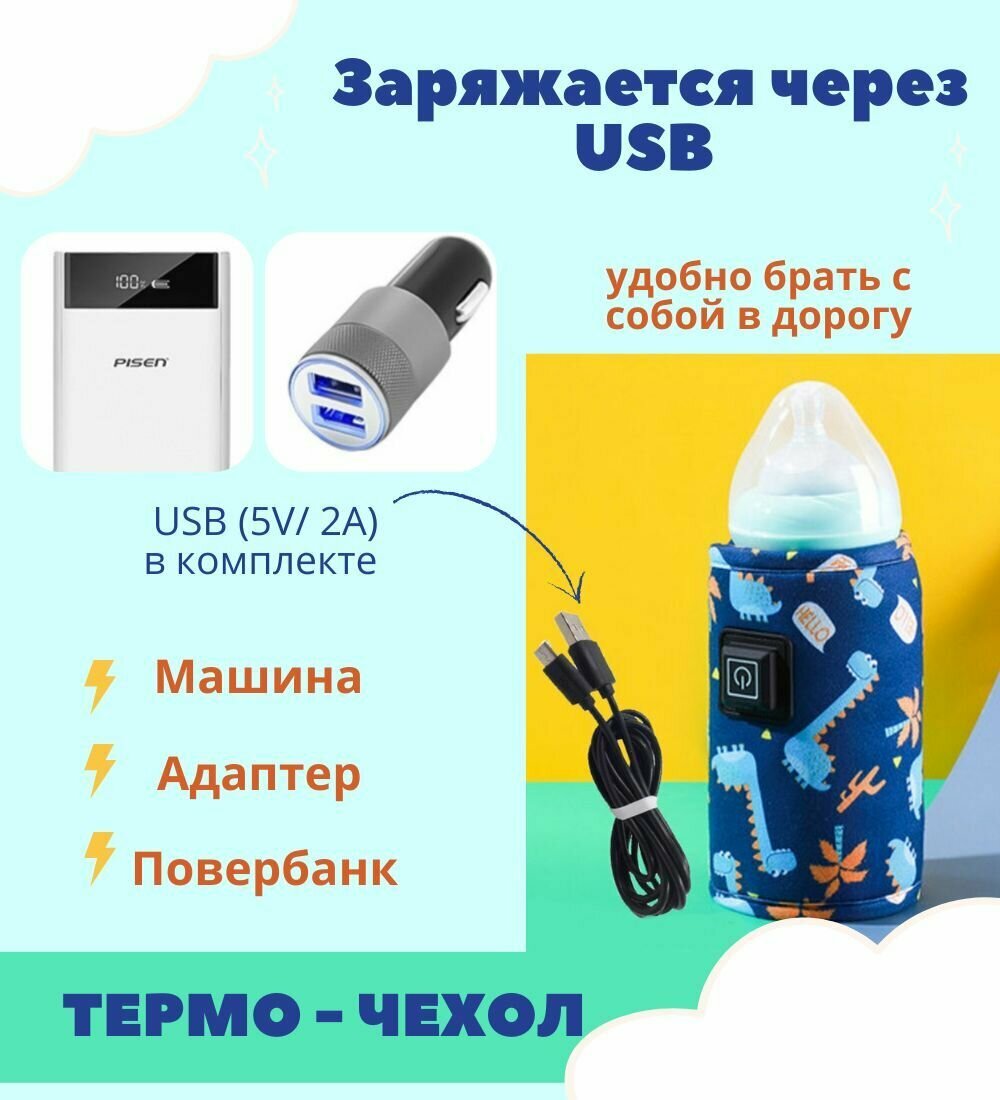 Подогреватель бутылочек для кормления / USB термос - чехол синий, 1шт интересное: