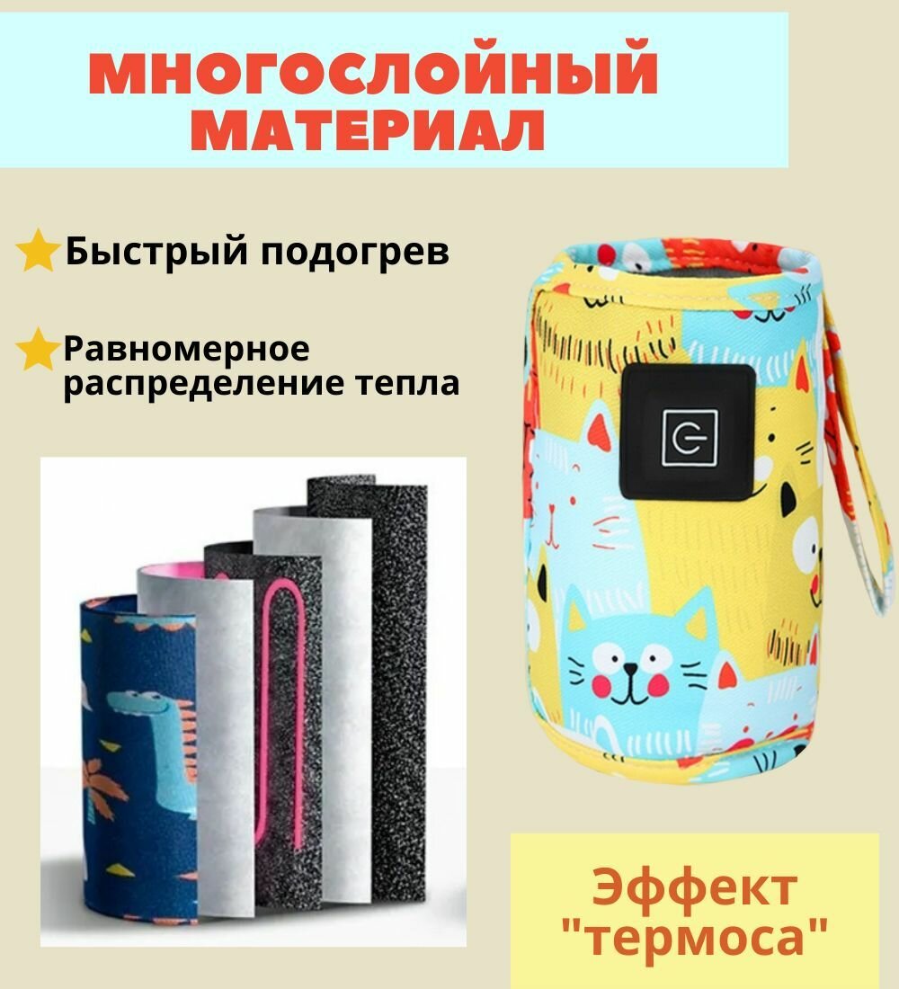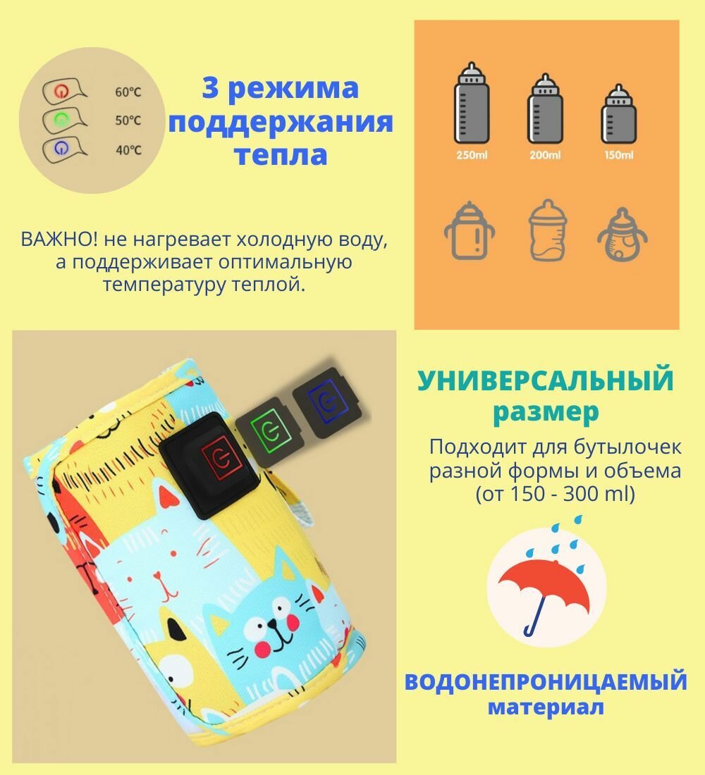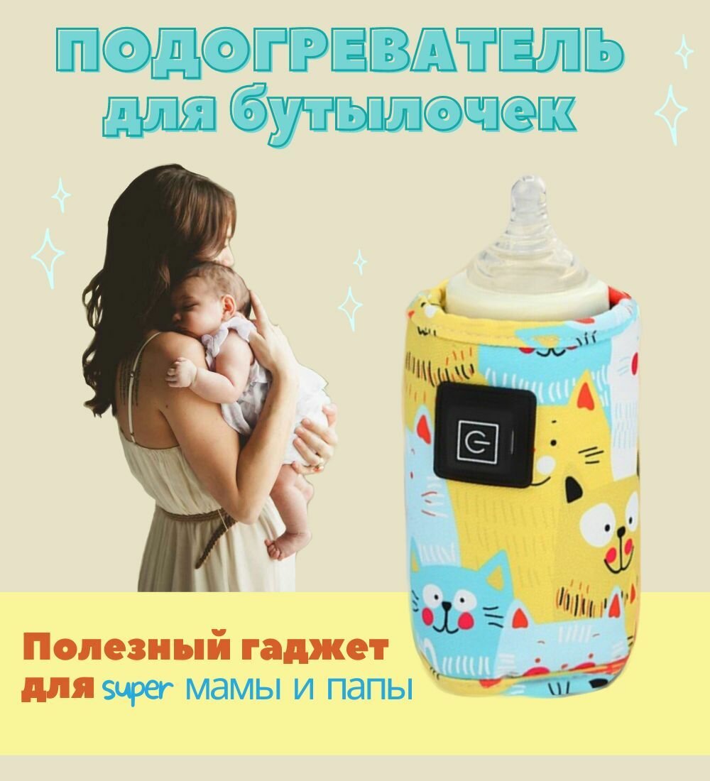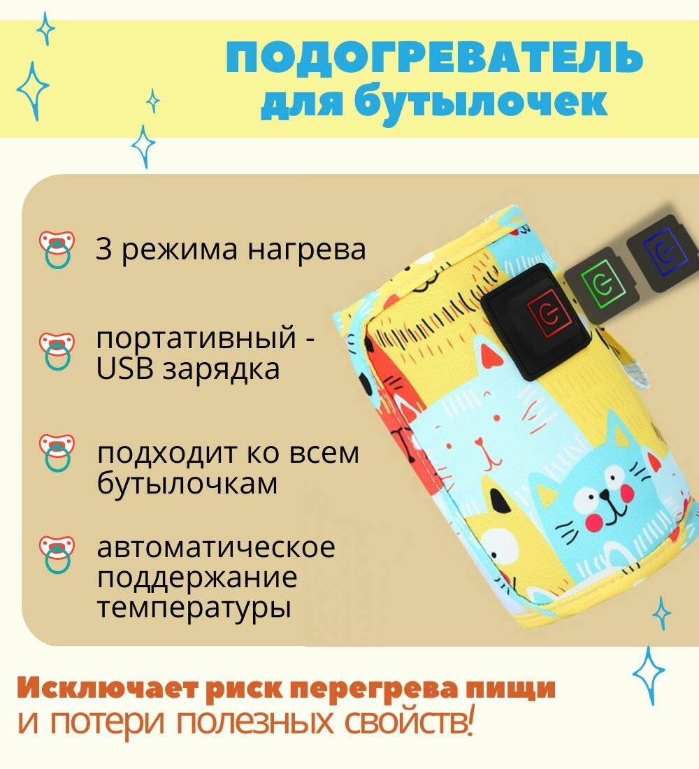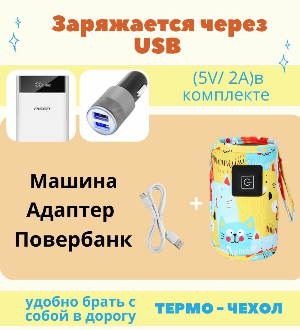 Нагреватель бутылочек для детского питания / 3 режима с USB зарядкой / термос- чехол яркий, 1ш интересное: