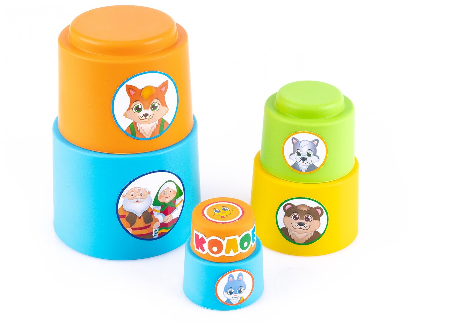 Купить Мягкая пирамидка стаканчики с наклейками Колобок