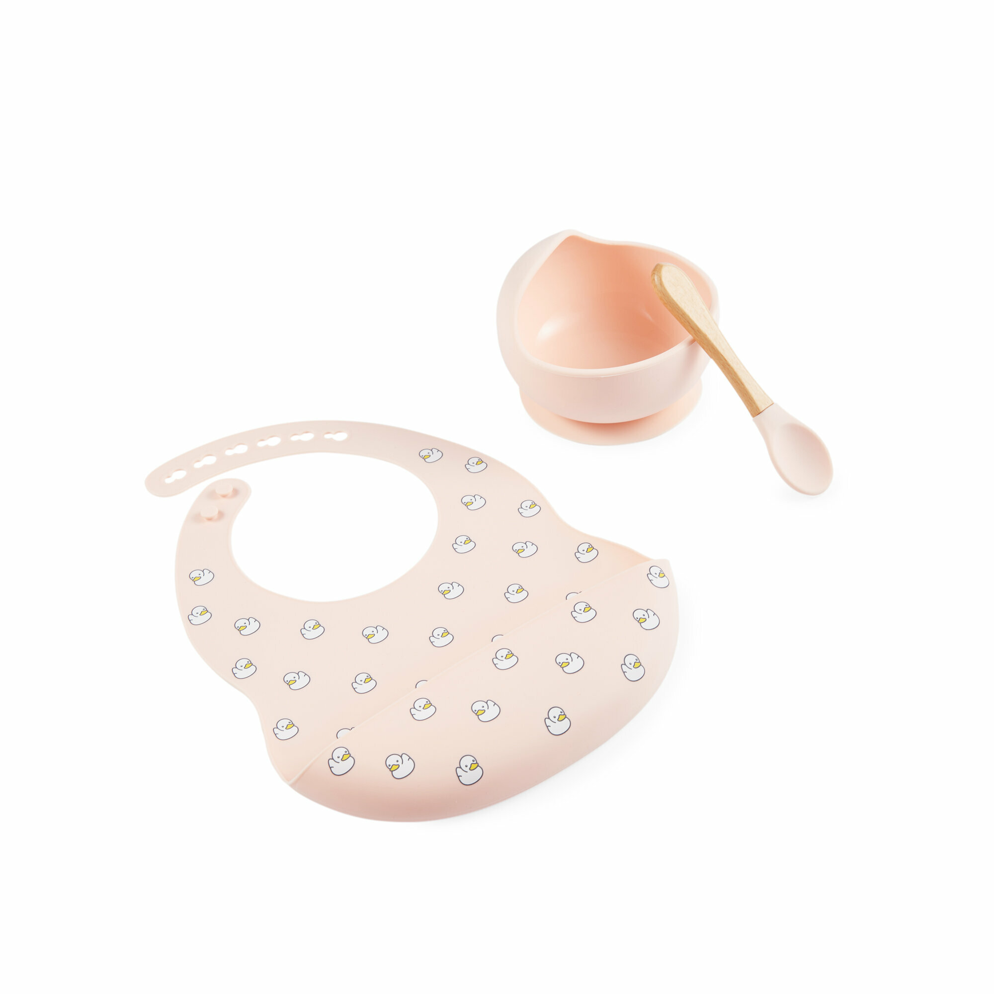 Купить 15064, Набор посуды для детей Happy Baby, миска на присоске и ложка, тарелка непроливайка, розовая