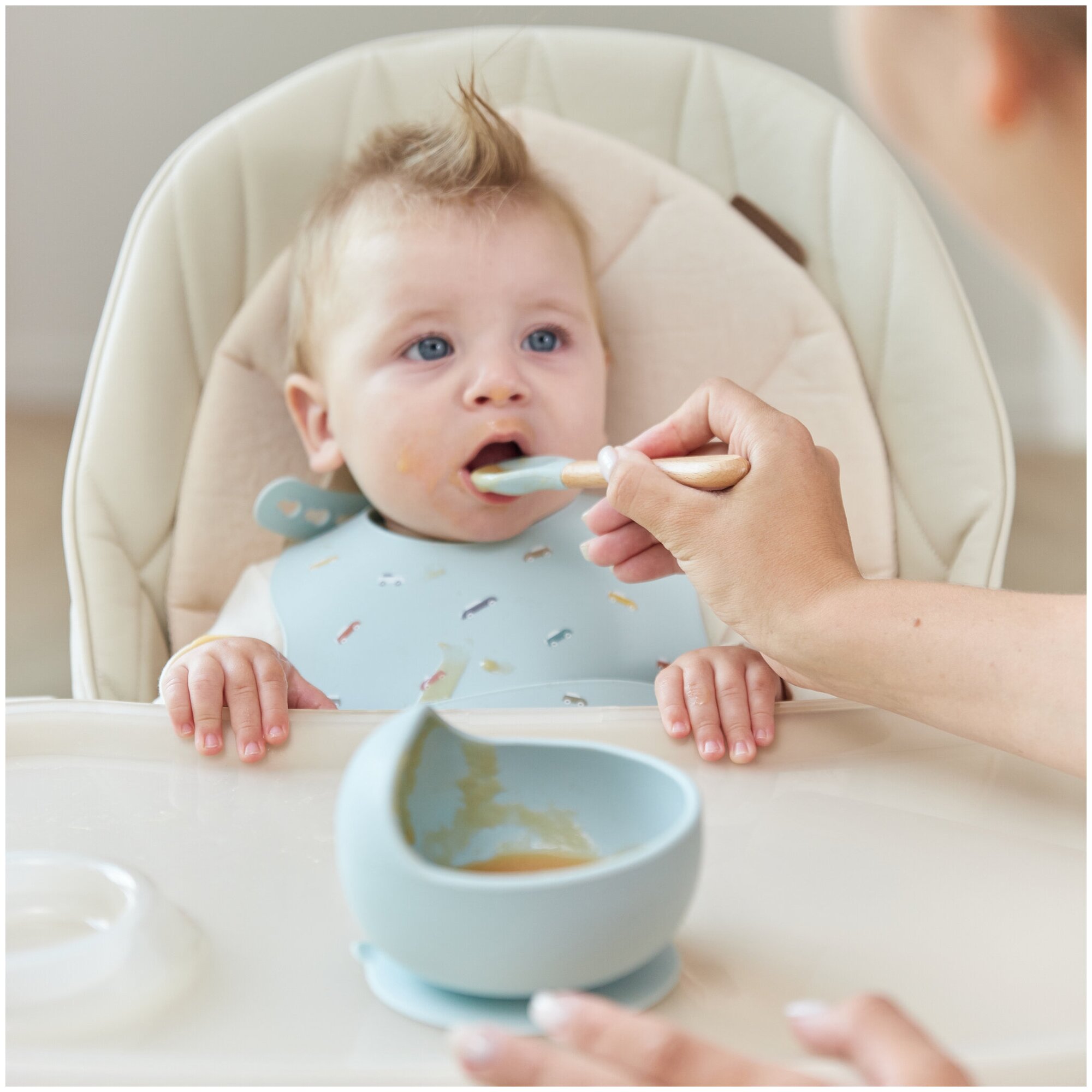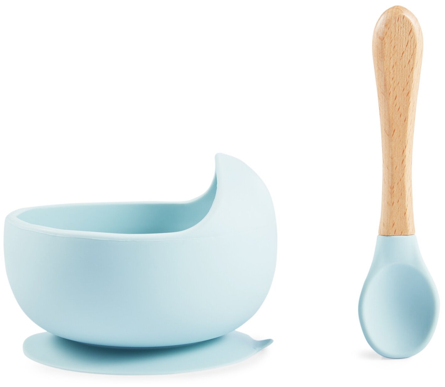 Купить 15064, Набор посуды для детей Happy Baby, миска на присоске и ложка, тарелка непроливайка, голубая
