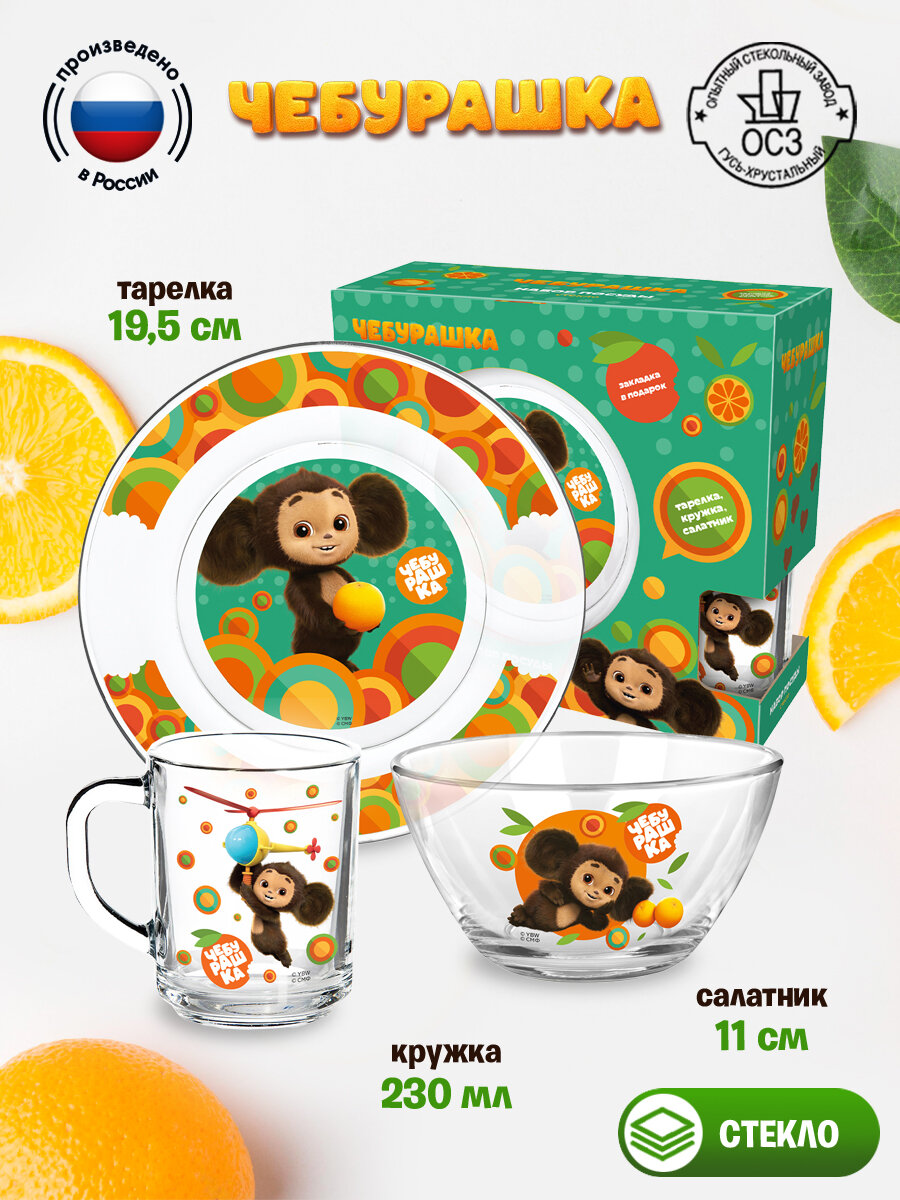 СохранитьНабор детской посуды "Чебурашка", (3 предмета, подарочная упаковка), спец-серия, стекло, 307109 интересное: