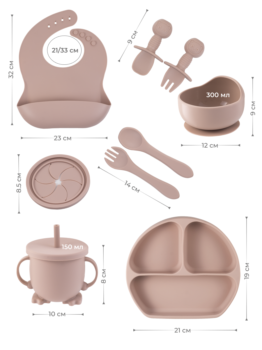 Детский силиконовый набор посуды для кормления ребёнка 10 предметов