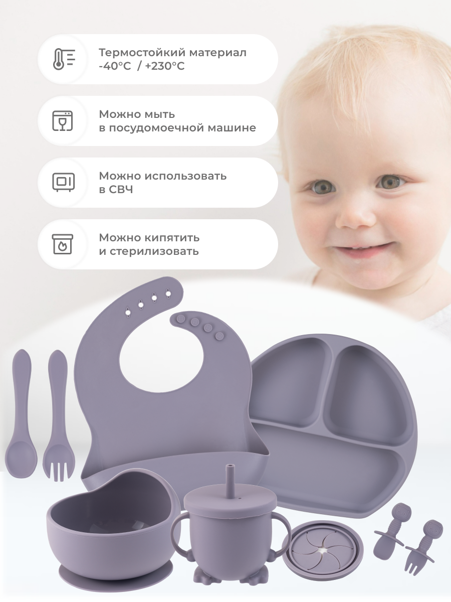 Купить Детский силиконовый набор посуды для кормления малыша 10 предметов