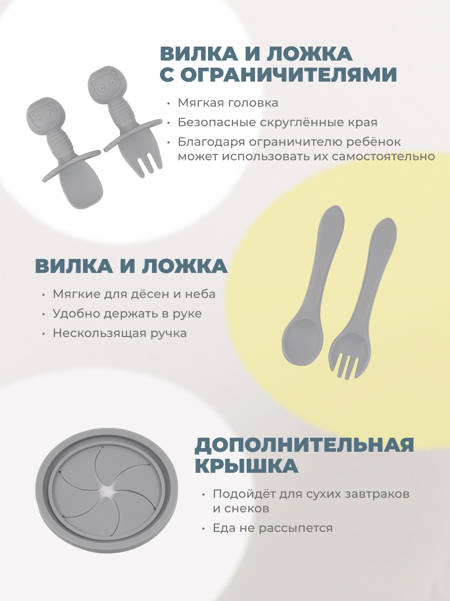 Детский силиконовый набор посуды для кормления ребёнка 5 предметов