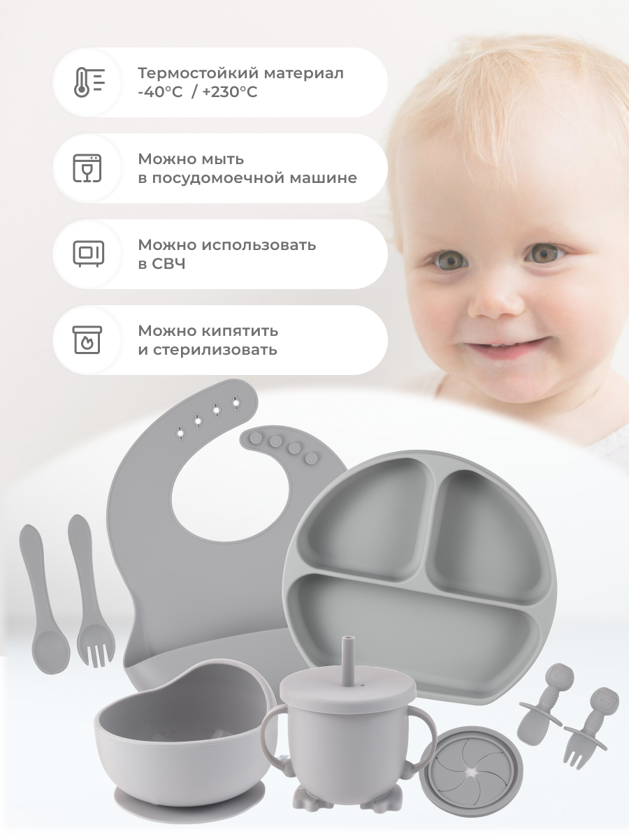 Купить Детский силиконовый набор посуды для кормления малышей 10 предметов