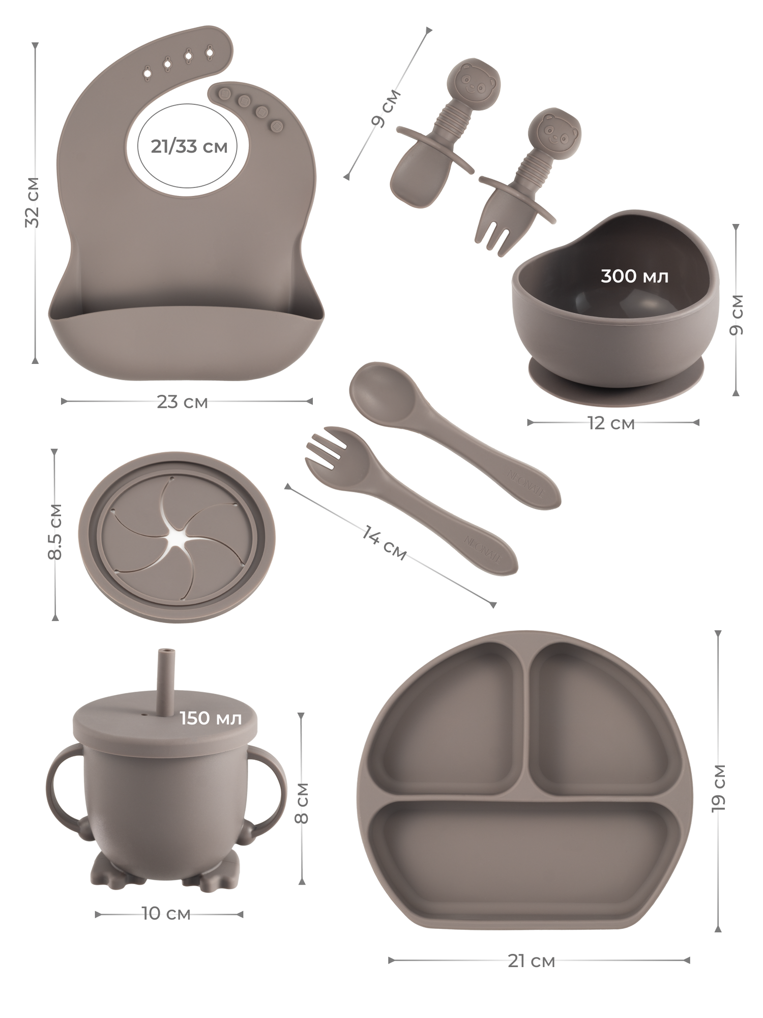 Детский силиконовый набор посуды для кормления ребёнка 10 предметов