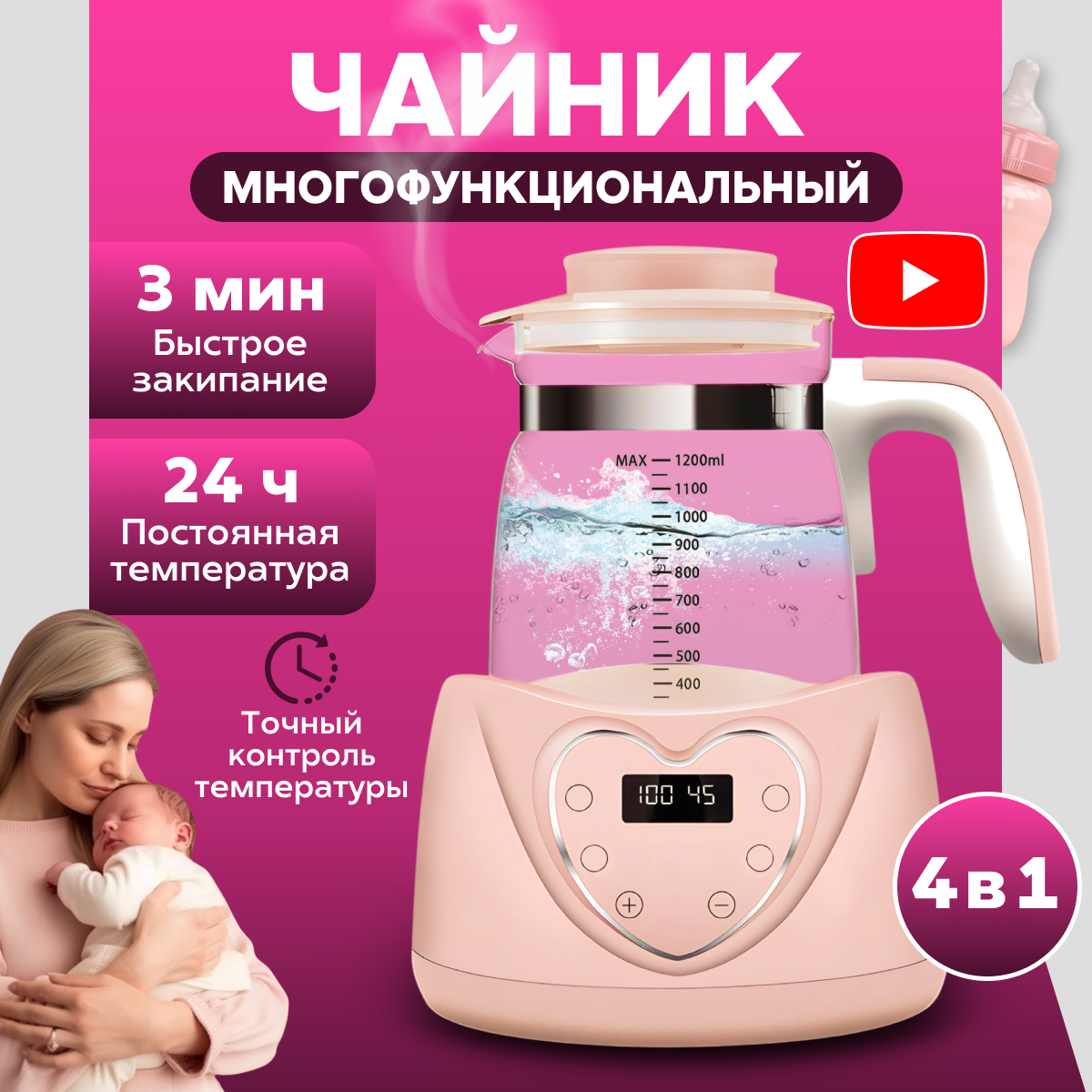 Купить Многофункциональный чайник, стерилизатор для бутылочек, с контролем температуры