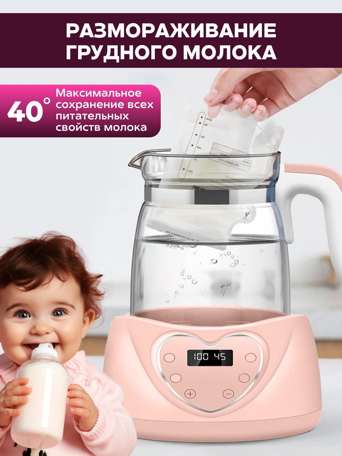 Подогреватель детского питания, стерилизатор бутылочек, сосок, многофункциональный чайник, с контролем температуры