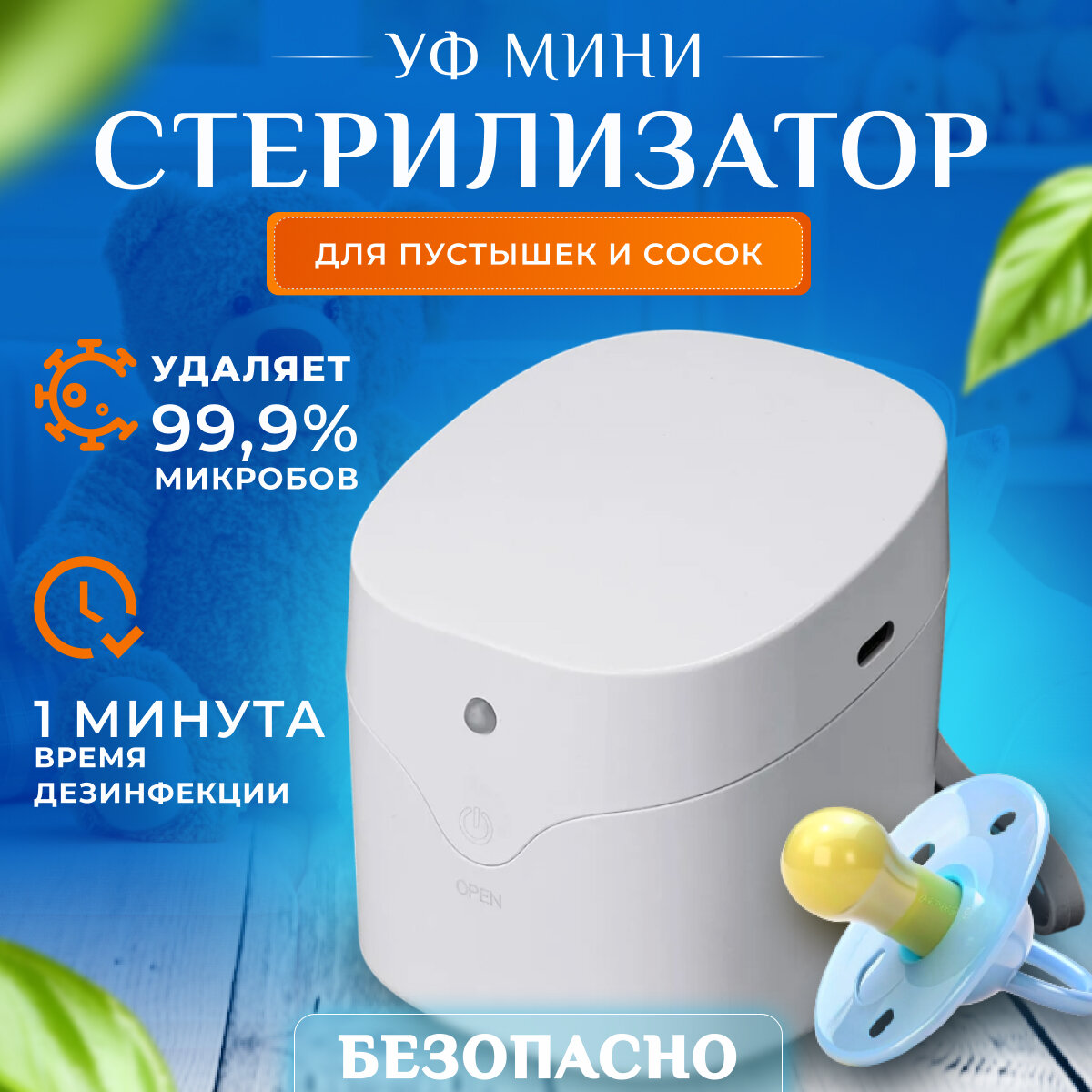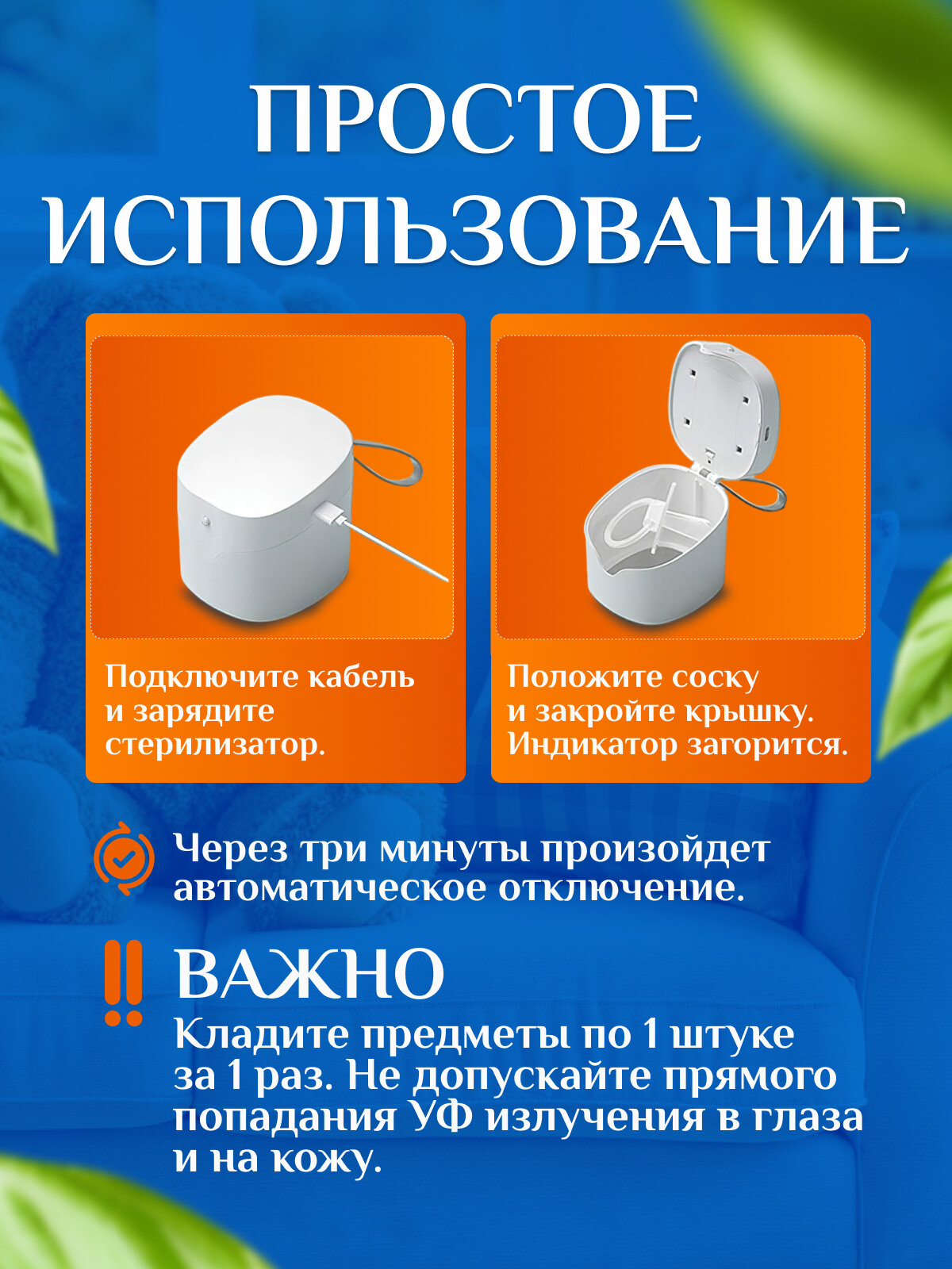 | Особенности | автоматическая стерилизация, автоматическое отключение, дорожный, звуковой сигнал, световой индикатор |