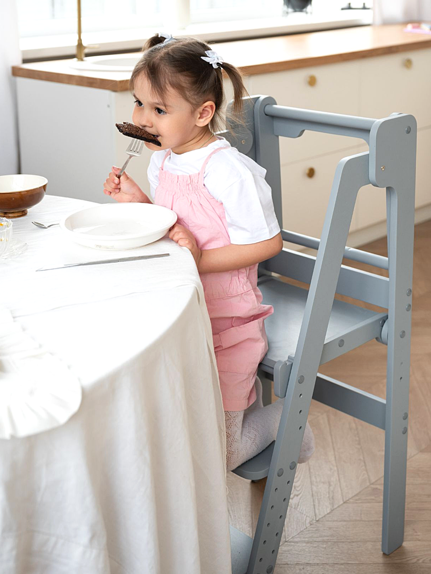 Башня Помощника с доской для рисования Монтессори серая интересное: