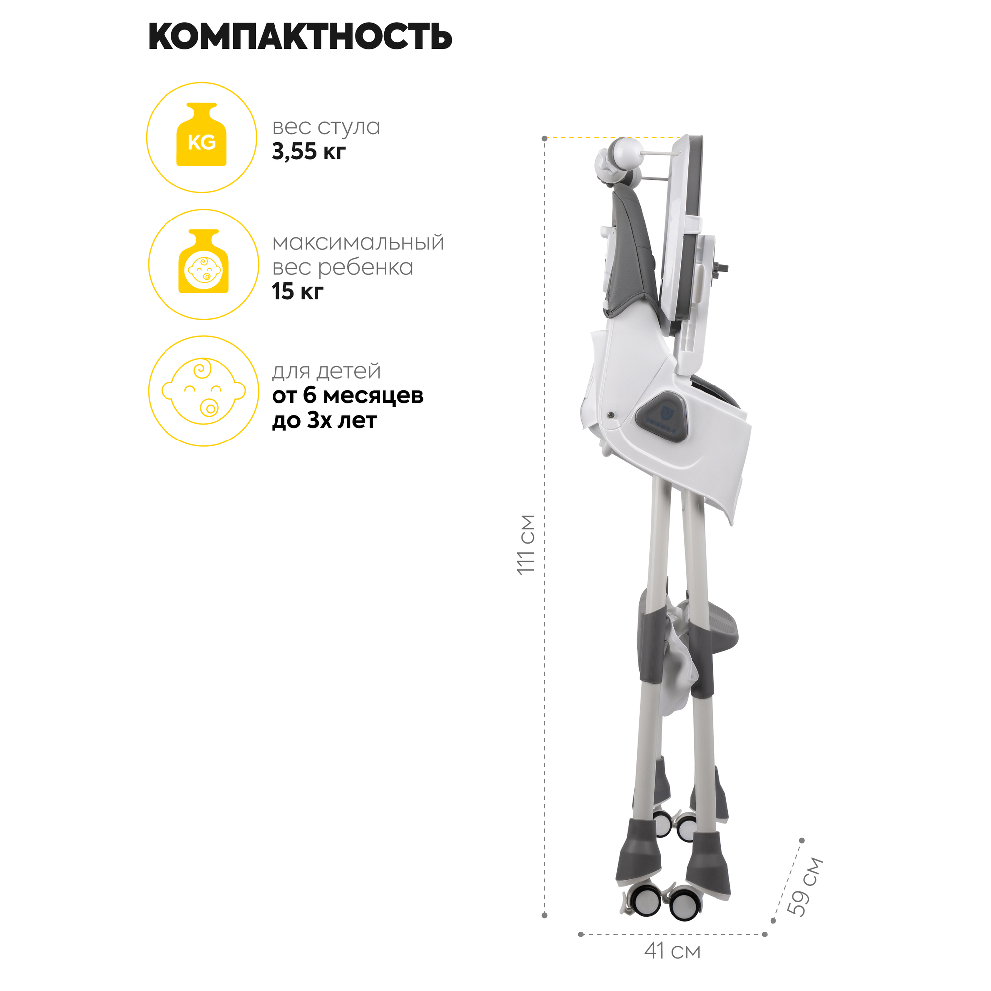 Стульчик для кормления детский Jovola Jelly от 6 до 36 месяцев, светло-серый